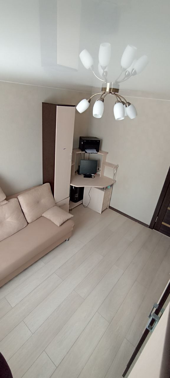 Сделан качественный ремонт: заменена вся электрика, выровнены стены, в сан. узле тёплый пол, натяжные потолки во всей квартире, на полу ламинат, межкомнатные и входная двери в едином стиле, пластиковые окна. Заменены стояки отопления, радиаторы (пр-во Италия). Балкон застеклён.
