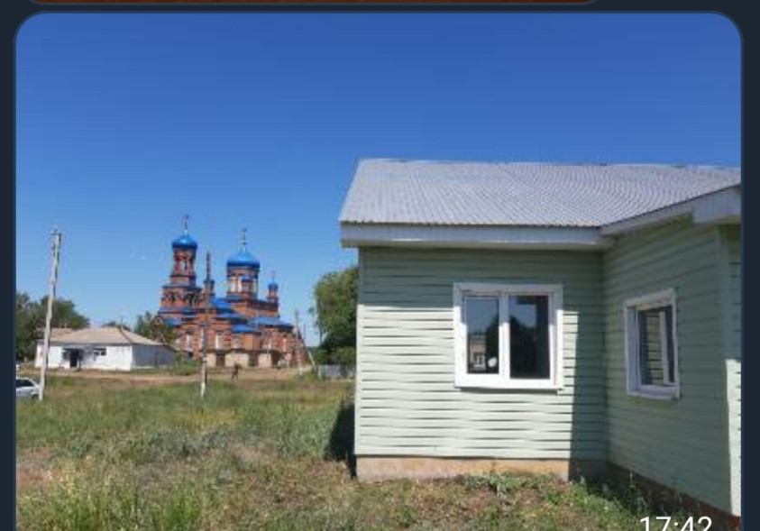 Дом находится на центральной улице. Рядом школа, детсад, церковь, магазины. Недалеко река Самарка и озера. В поселке тихо и спокойно.