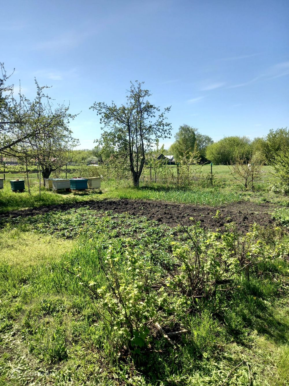 На участке плодовые деревья: яблони, груши, вишня, сливы, черешня, смородина, малина, а также клубника, виноград 3 видов.