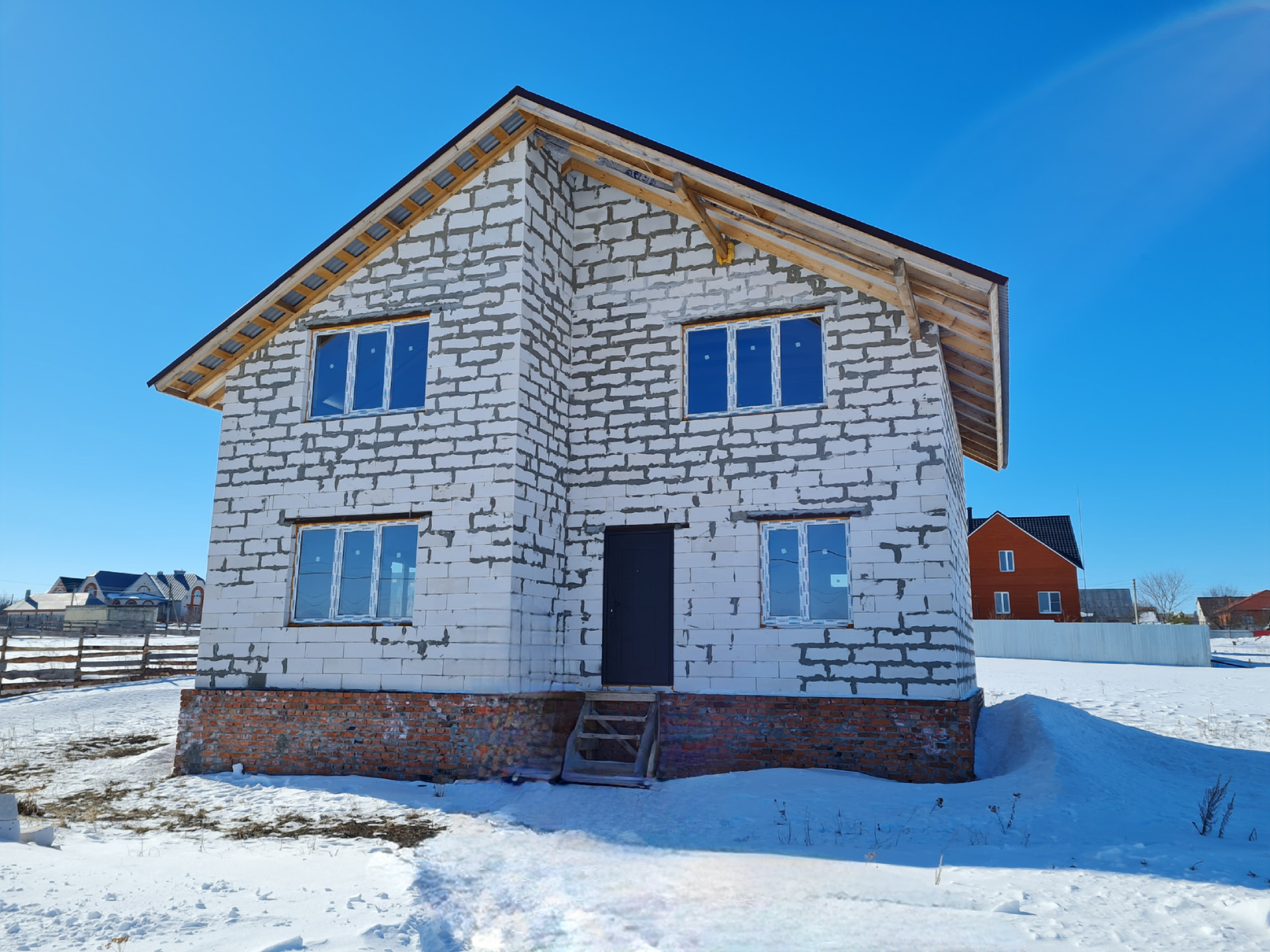Продается дом 132.2 кв.м, 2 этажа без внутренней отделки. Стены- газоблок, толщина 300мм, крыша- профлист, окна ПВХ, входная дверь металлическая, 2 входа, электричество в доме, газ подведен. Участок земли 15 соток прямоугольной формы, ровный. Хорошие соседи, уже живут. Реальному покупателю торг при осмотре. Быстрый выход на сделку. 2 взрослых собственника. По всем вопросам- пишите.
