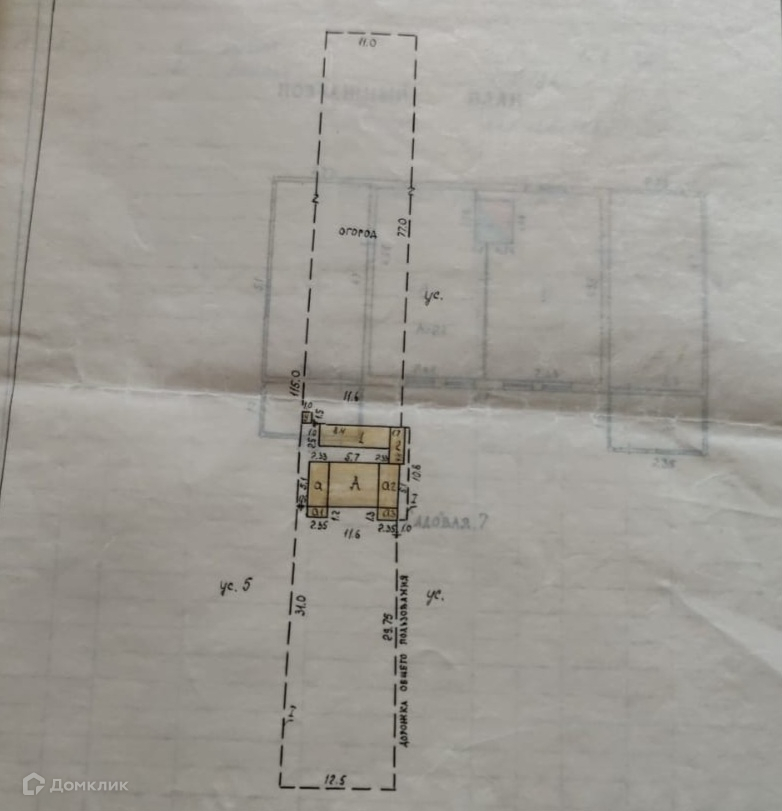 На участке старенький домик под снос. Ширина участка 12,5 метров со стороны Садовой, на другом конце 11 метров. Более 100 метров в длину. В доме имеется электричество, газовая труба на участке.