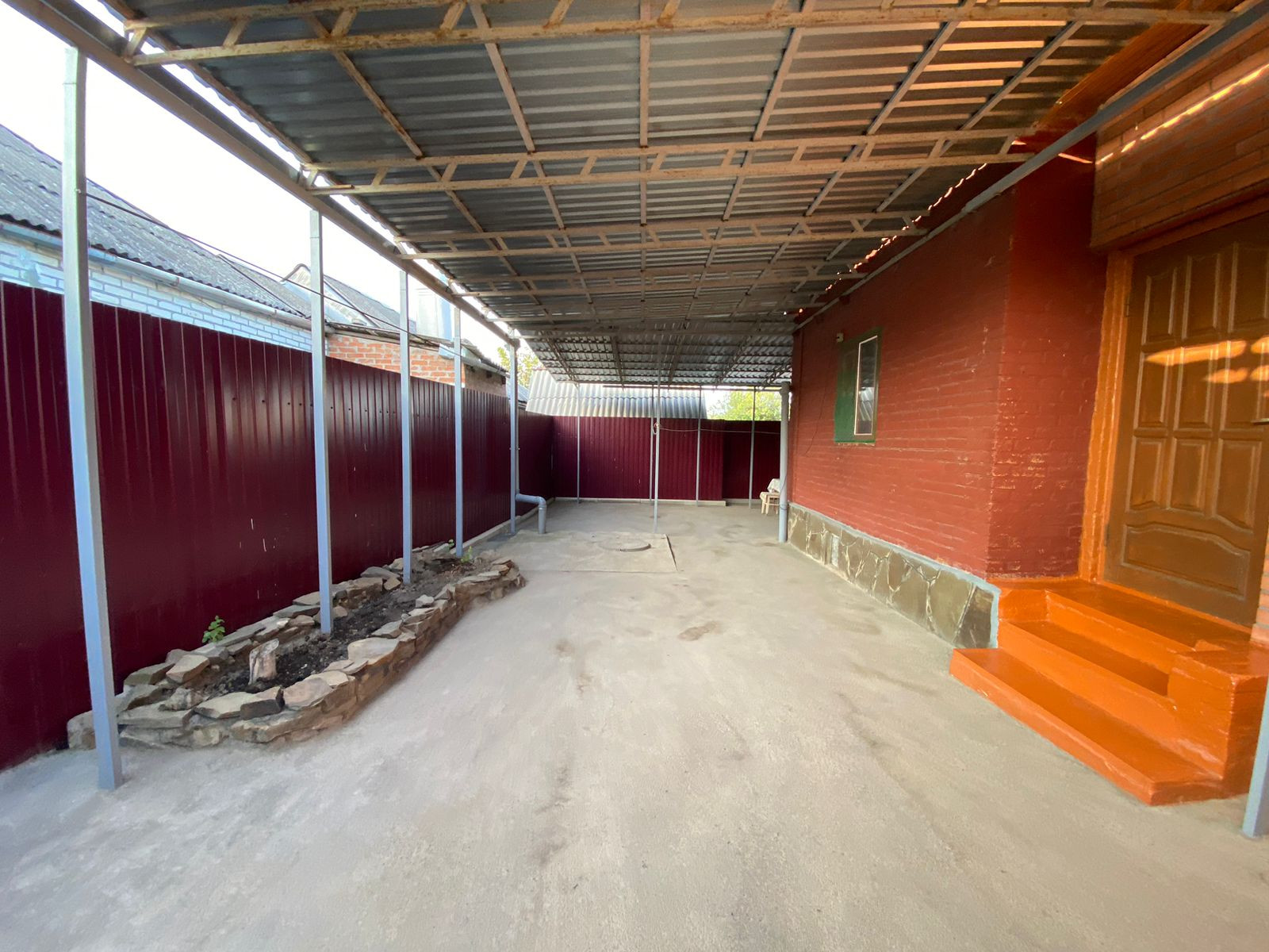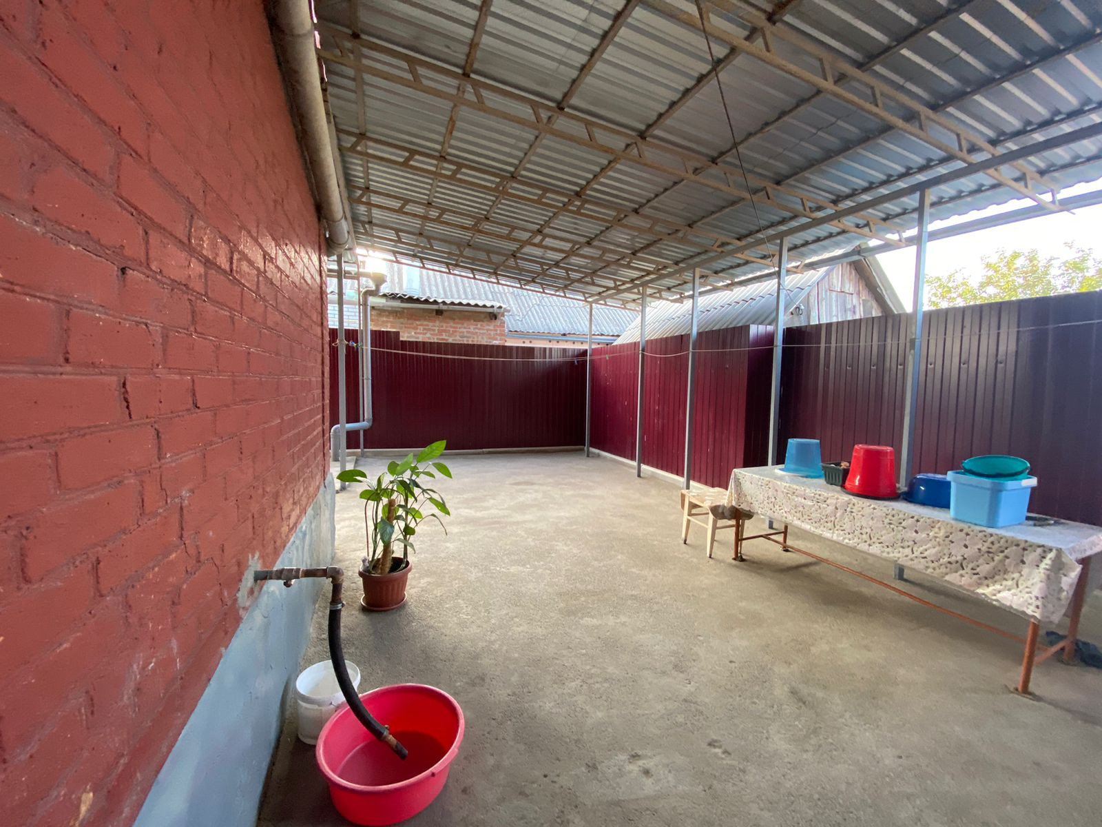 Двор асфальтированный, навес.