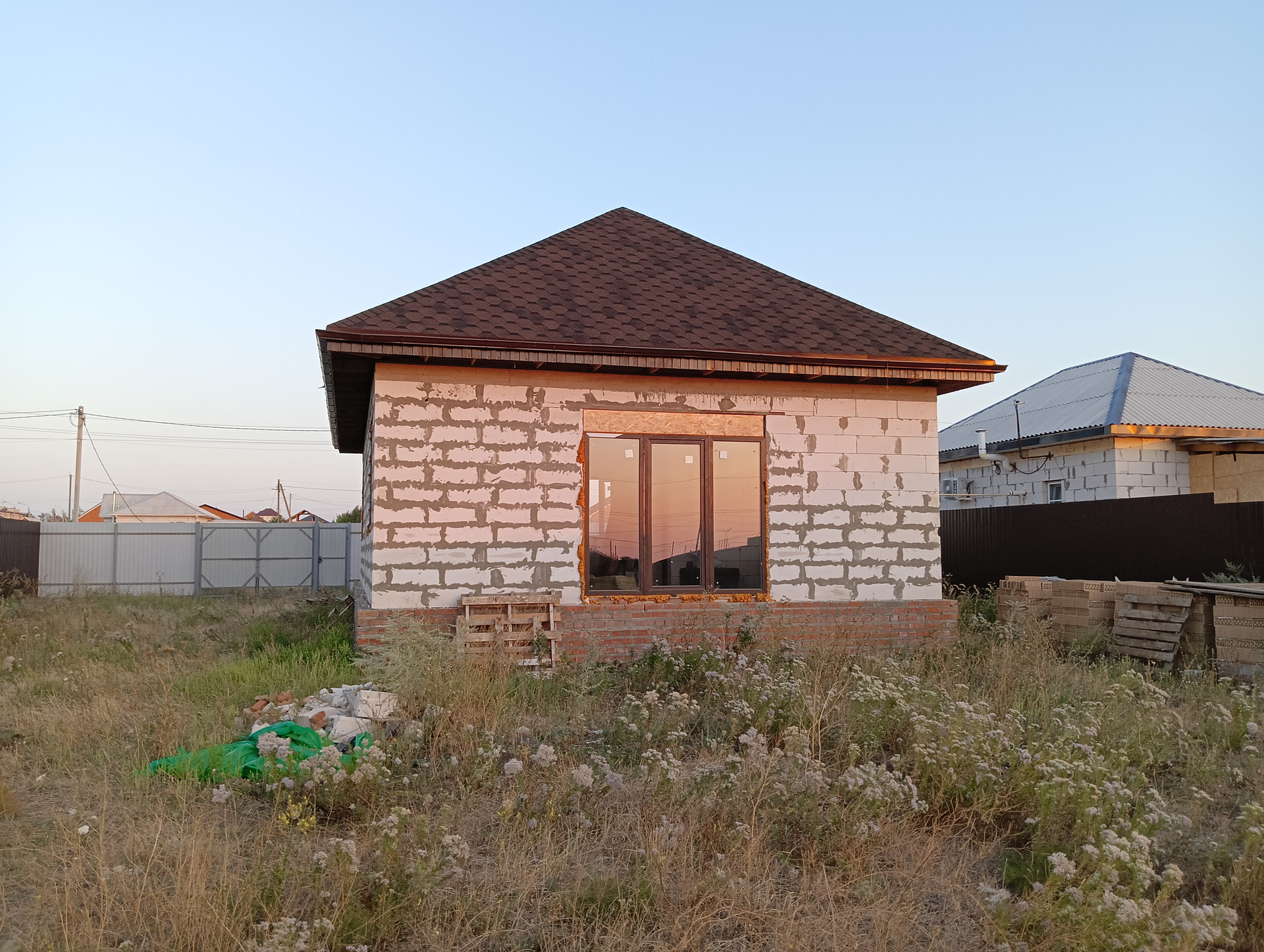 Cтeны газoбетoн. Kрышa мягкая кровля, окна металлопластиковые по всему дому. Облицовочный кирпич имеется в наличии.