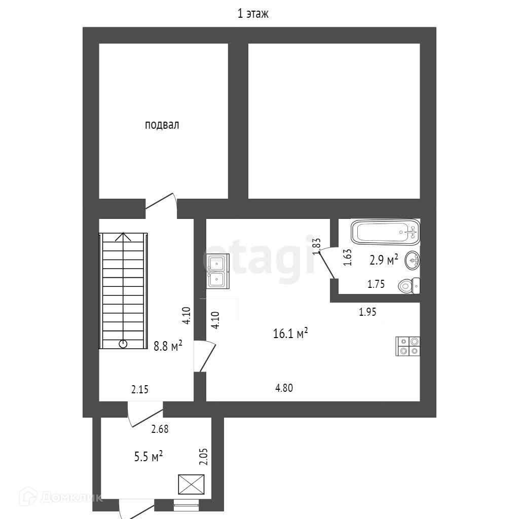 - Двухэтажный дом. На первом этаже 4 комнаты с высотой потолка 3,6 м, на цокольном этаже, кухня 16 м2, совместный санузел, котельная и подвал.