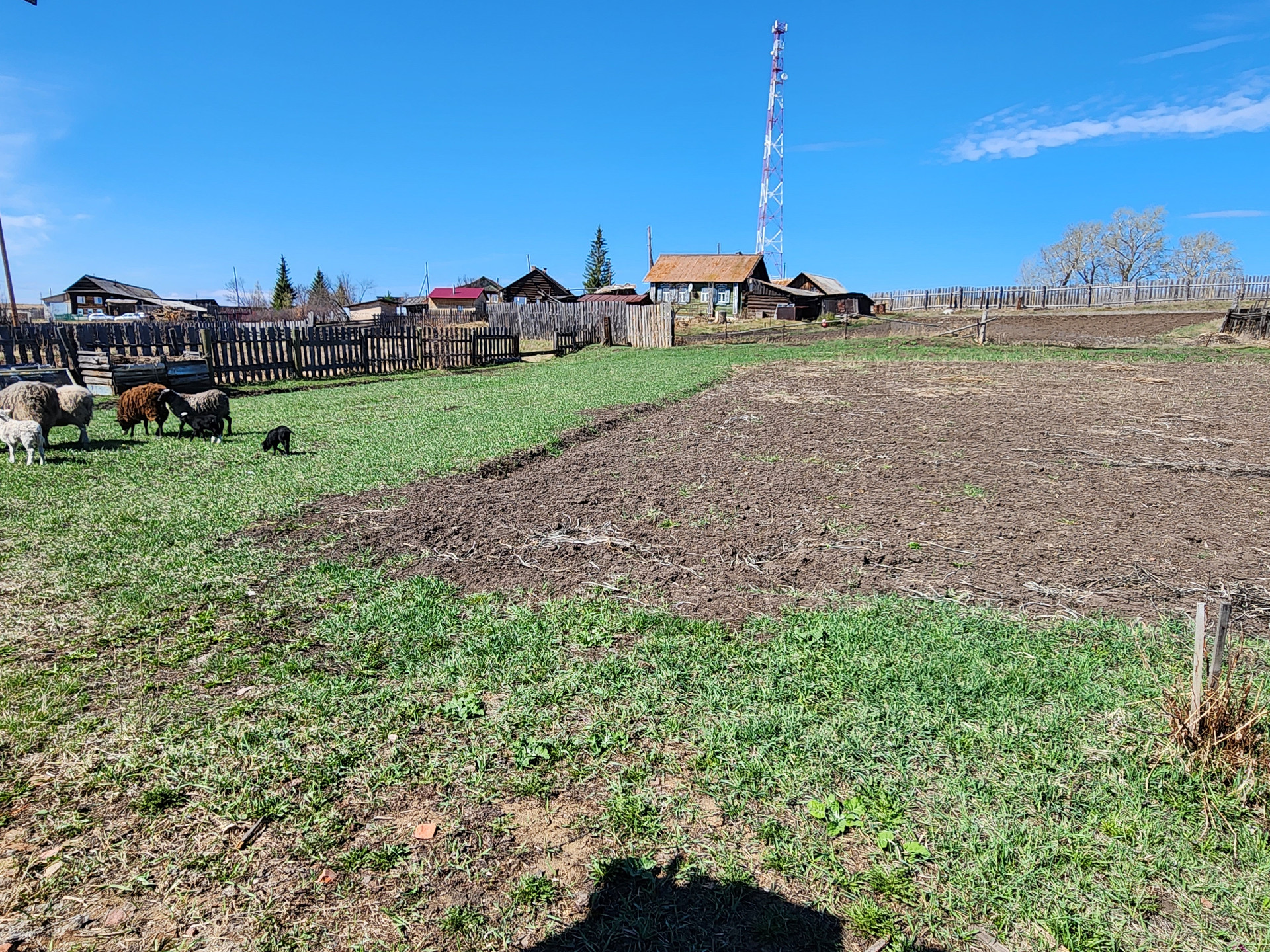 Огород разделен на две части.
