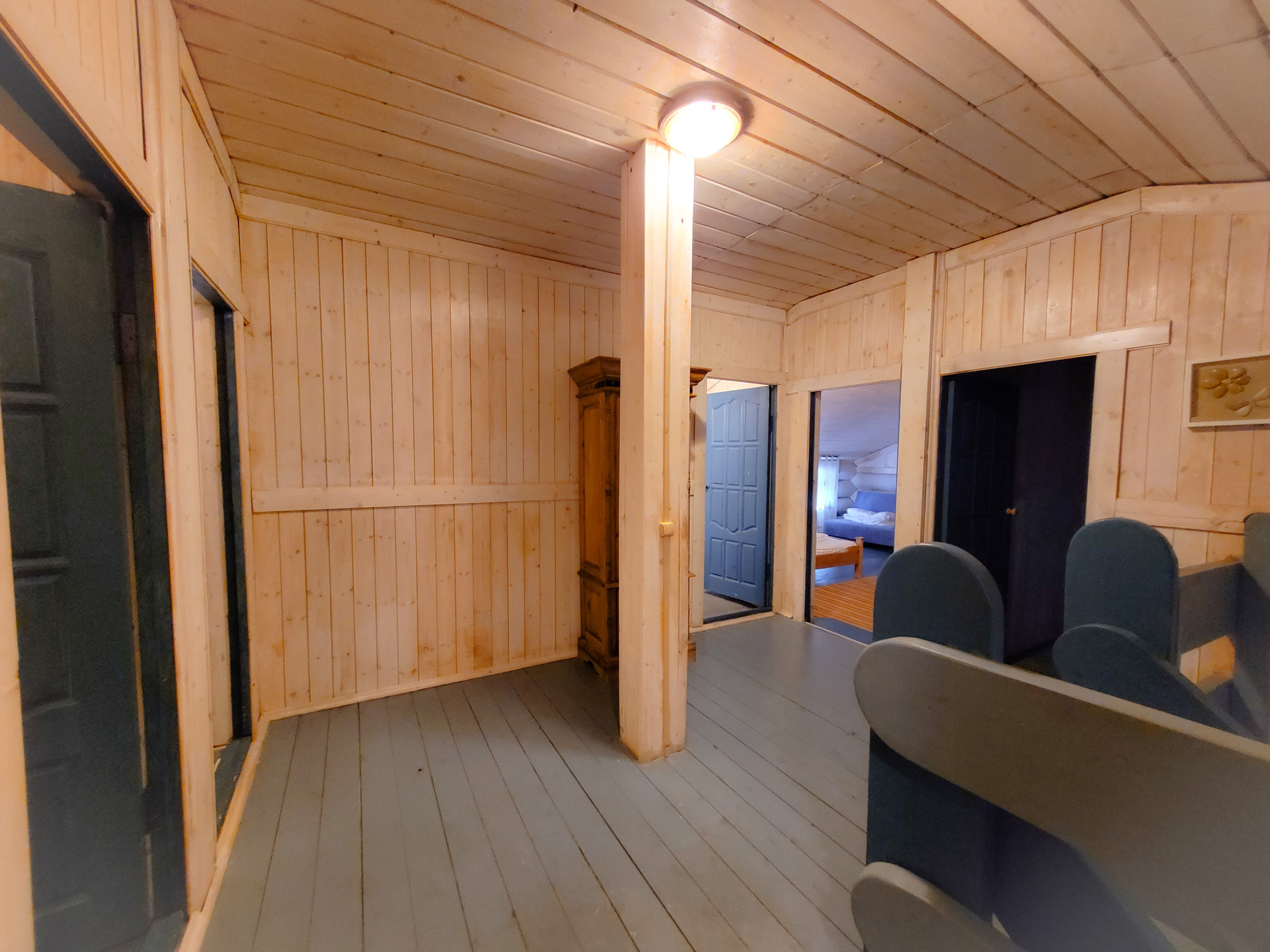 Двух этажный дом, площадью 200 кв.м. с баней. На первом этаже кухня, гостиная с камином, парная, душ, санузел. Второй этаж 2 спальни, санузел.