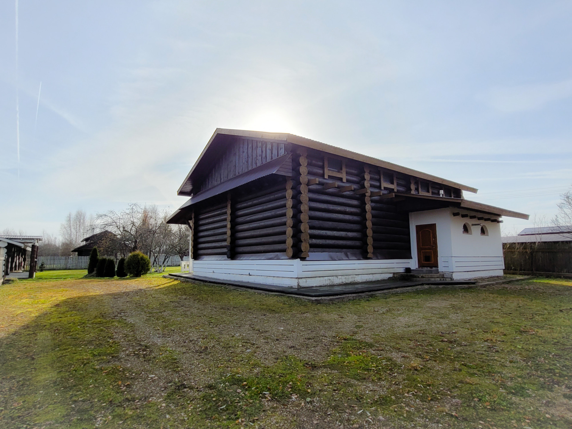 На участке отдельно расположена настоящая русская баня из бревна 50-70 диаметра ручной рубки, площадью 120 кв.м. Материал северная кондовая сосна, для самого взыскательного хозяина и гостей. Фундамент- монолитная плита.