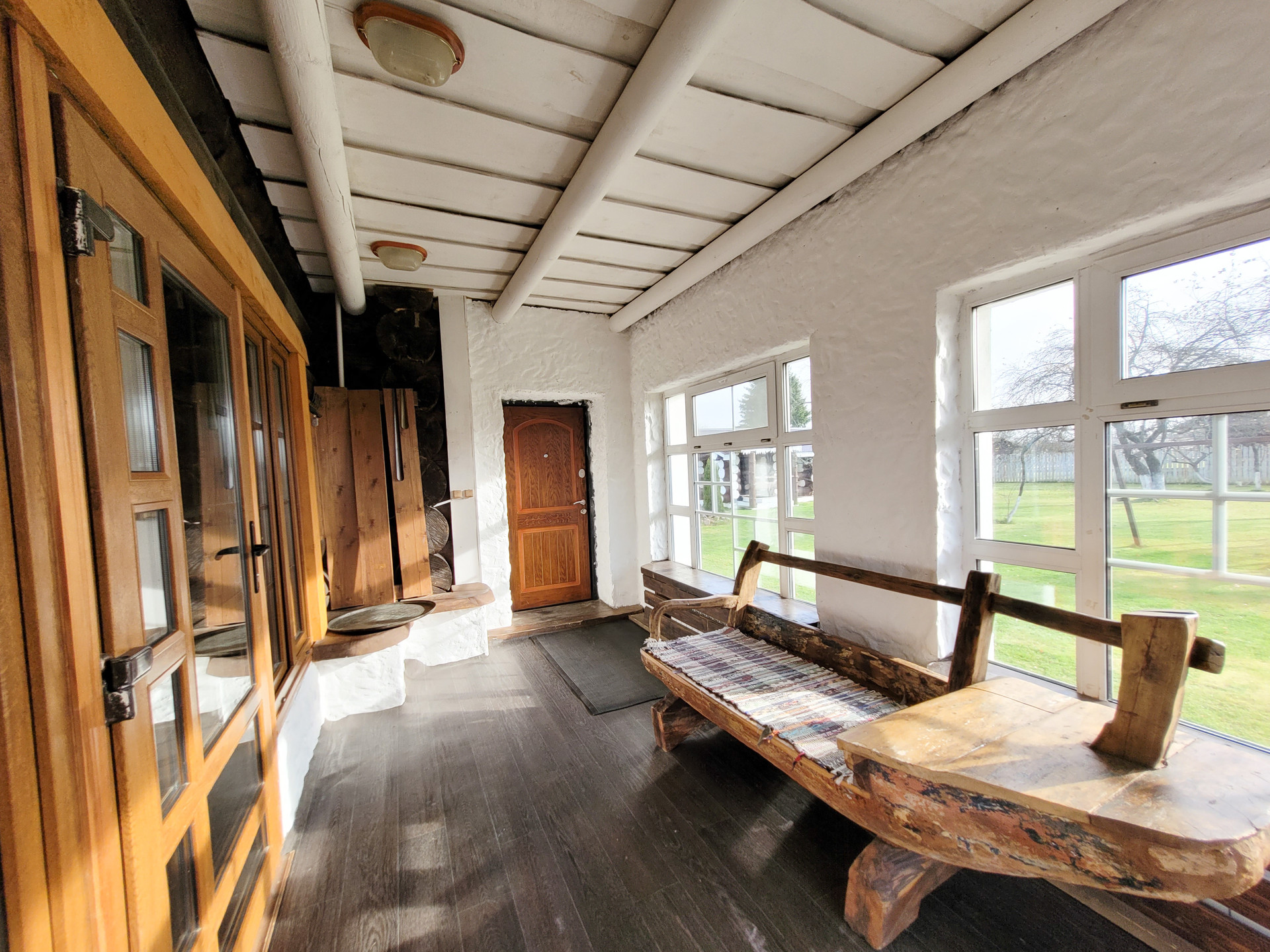 Материал дома: оцилиндрованное бревно 42 диаметра, северная сосна. Фундамент- монолитная плита.