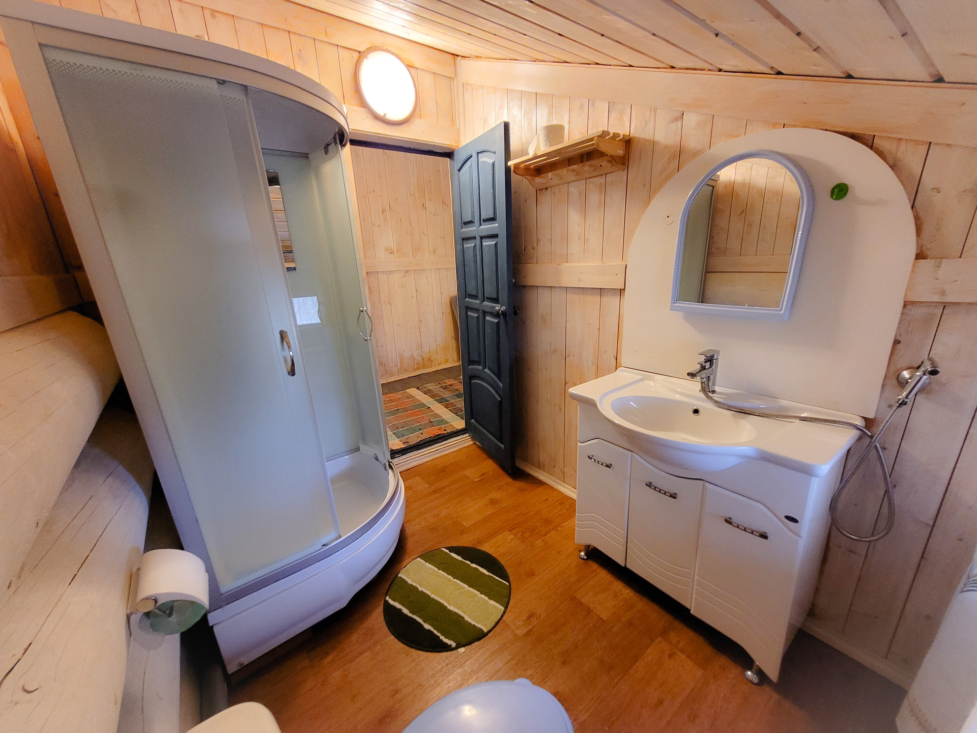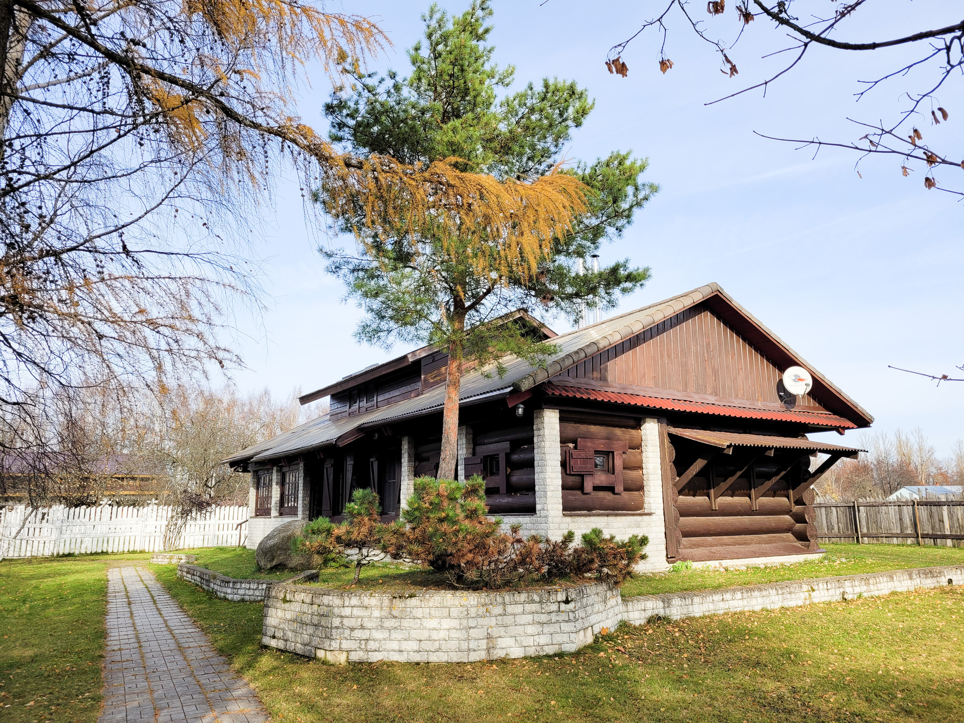 На участке отдельно расположена настоящая русская баня из бревна 50-70 диаметра ручной рубки, площадью 120 кв.м. Материал северная кондовая сосна, для самого взыскательного хозяина и гостей. Фундамент- монолитная плита.