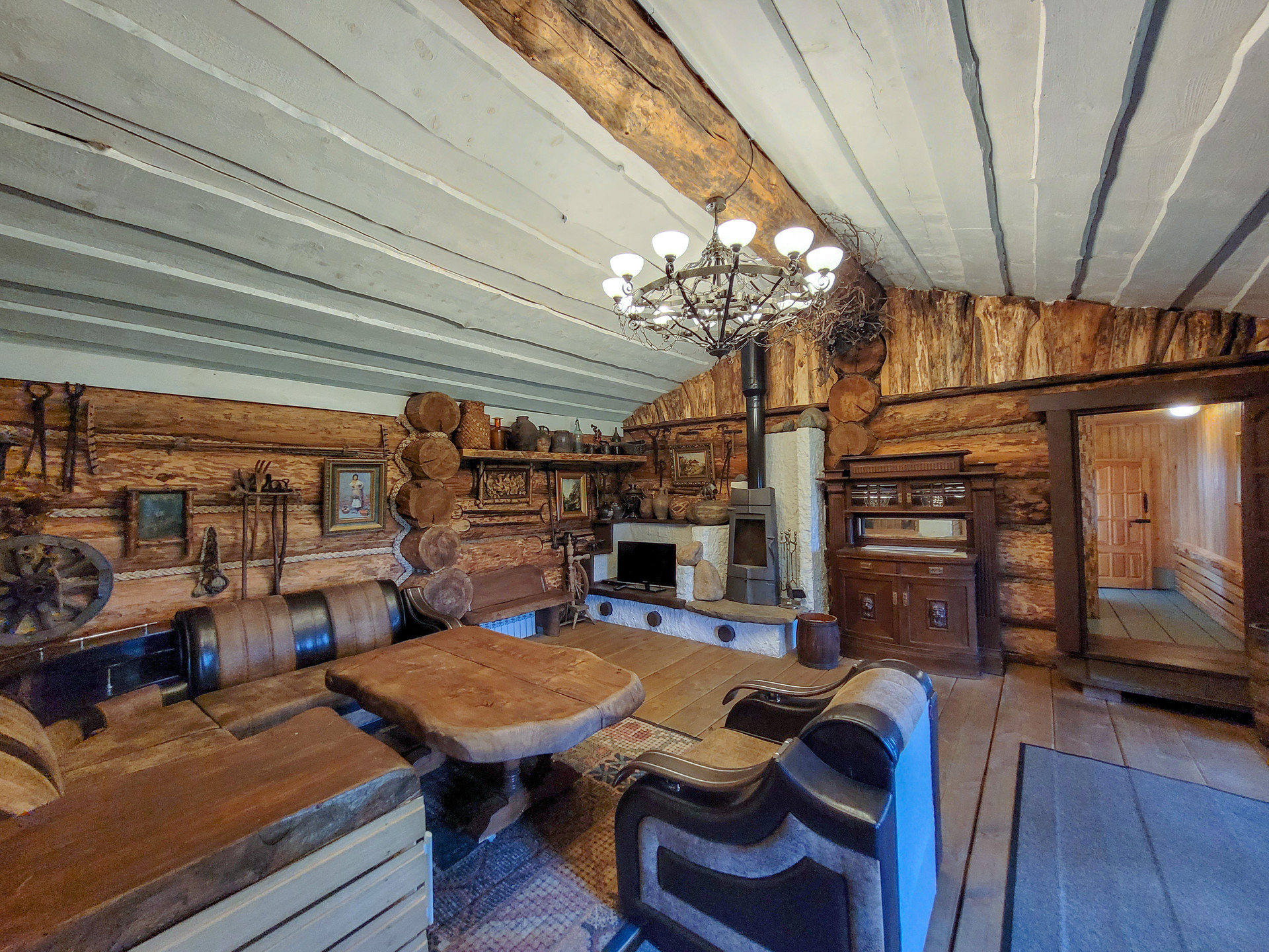 На участке отдельно расположена настоящая русская баня из бревна 50-70 диаметра ручной рубки, площадью 120 кв.м. Материал северная кондовая сосна, для самого взыскательного хозяина и гостей. Фундамент- монолитная плита.