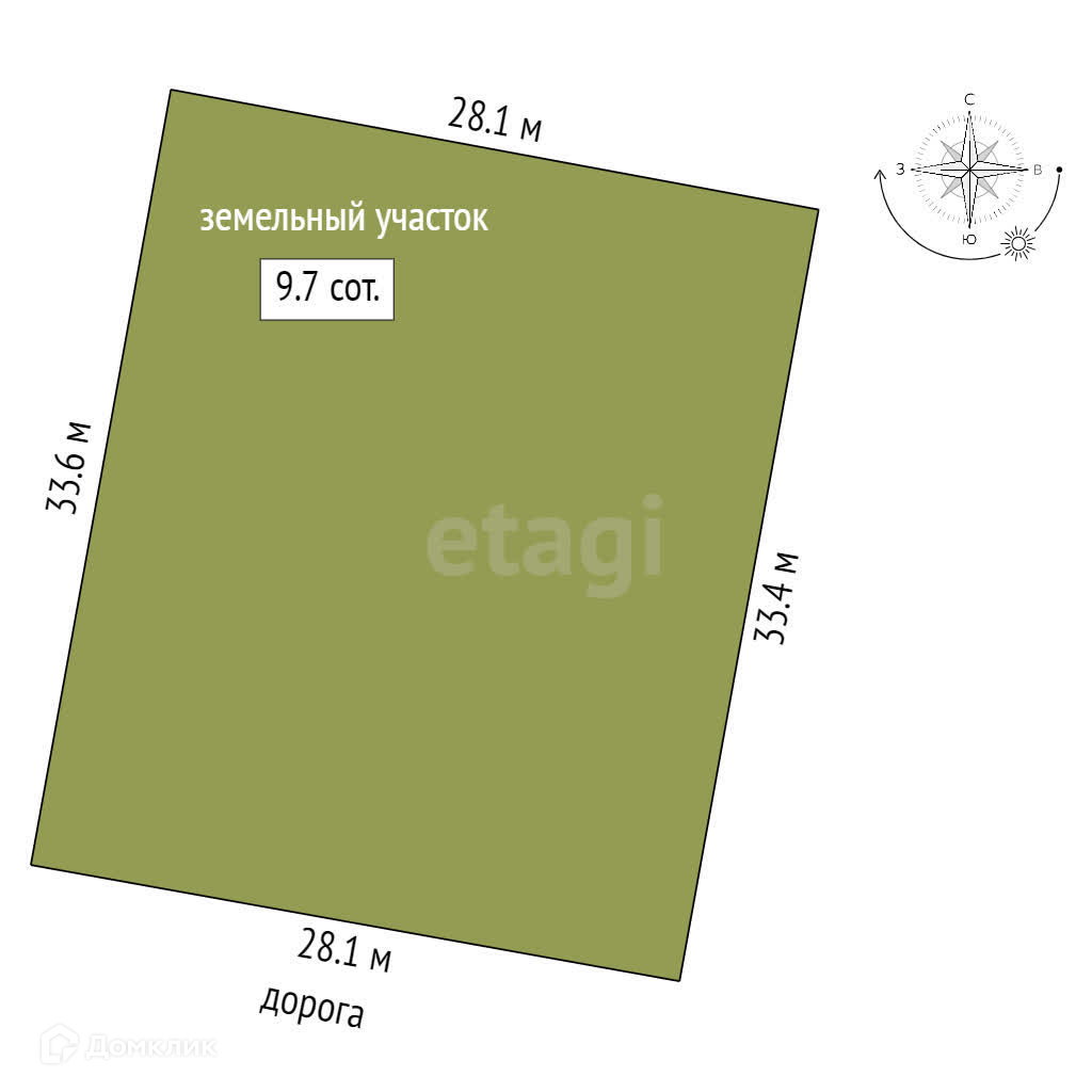 Площадь участка 9.7 сот.