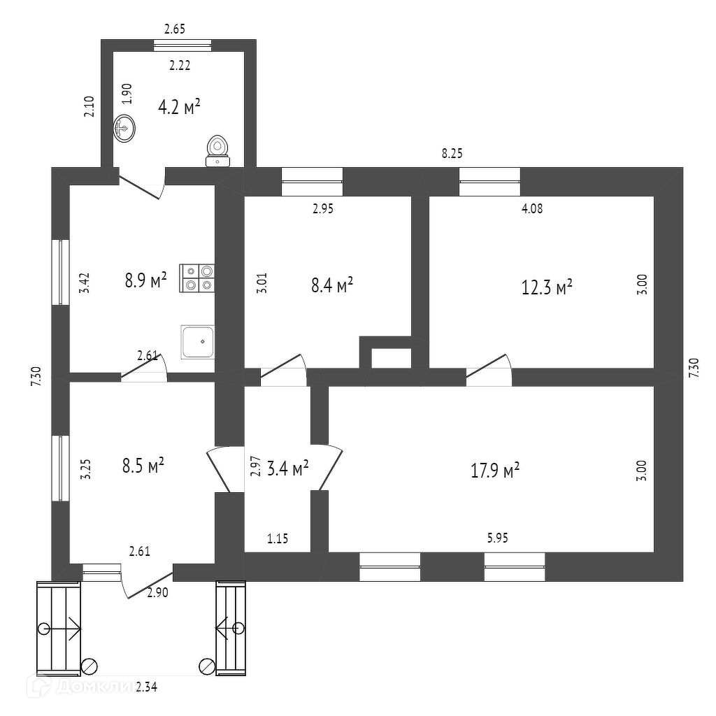 Общая площадь 64 м2