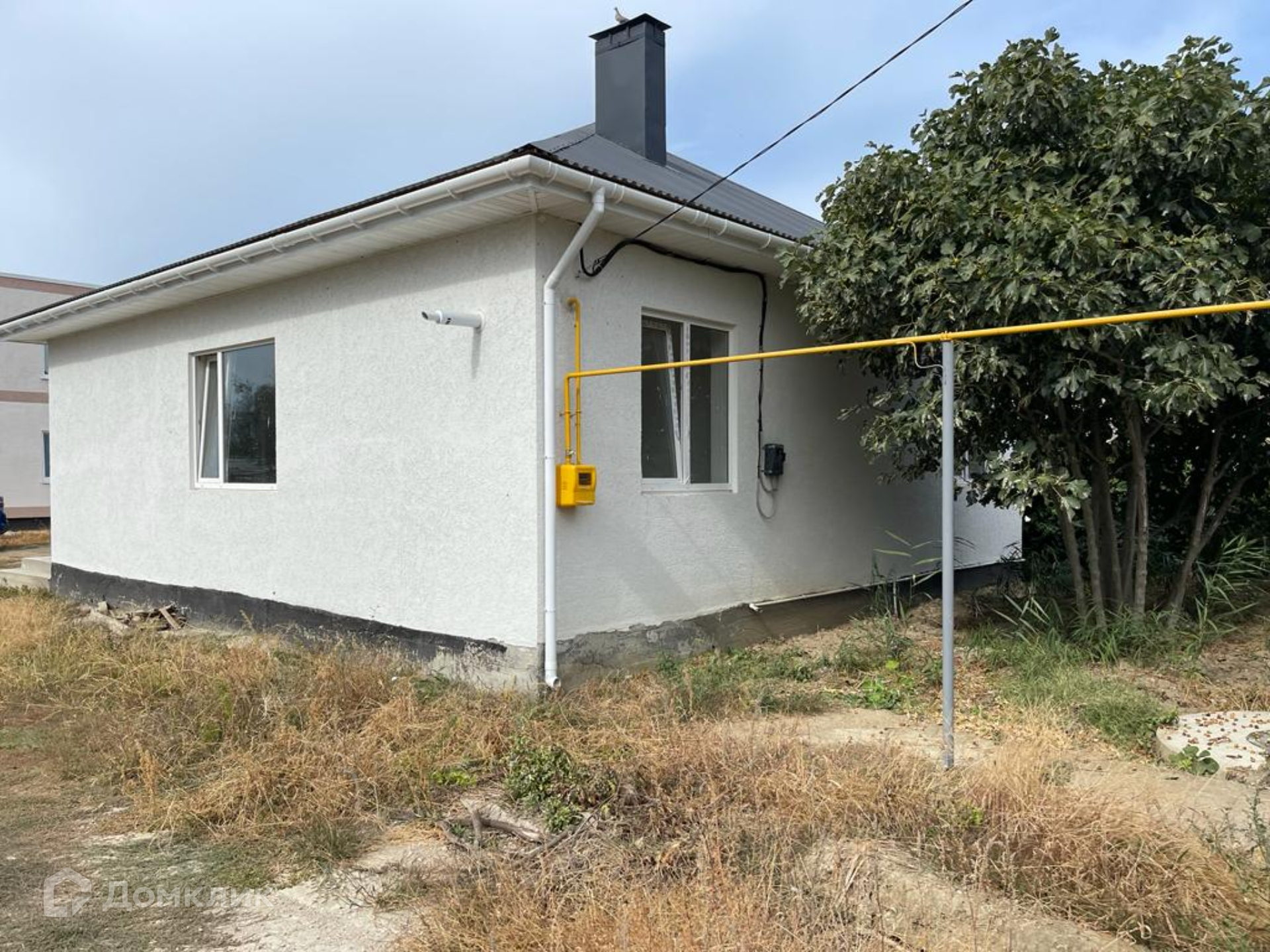 Во дворе есть сарайчик для инвентаря и перед домом дерево плодоносящего инжира.