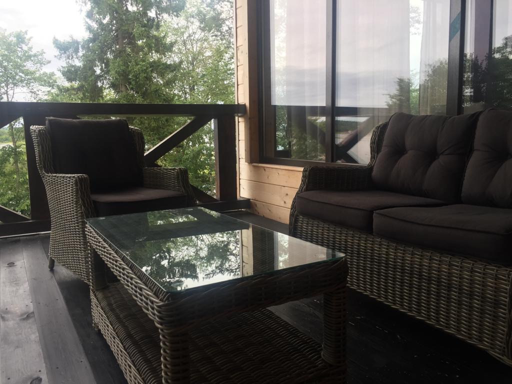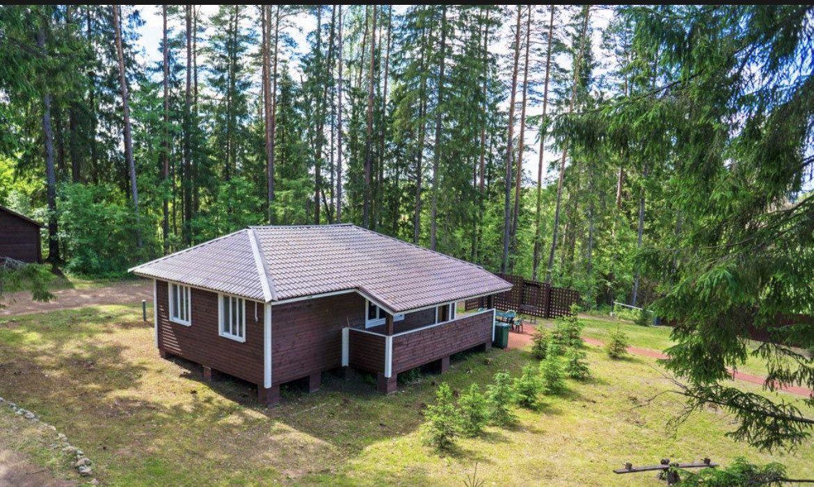 Основной хозяйский дом на берегу озера. Два этажа по 190м. Верхний этаж жилой. Состоит из трёх спален (одна с собственным санузлом), гостевого санузла, гостиной (80м), отдельной кухней, закрытой и открытой террасами с видом на Селигер. В гостиной камин.
