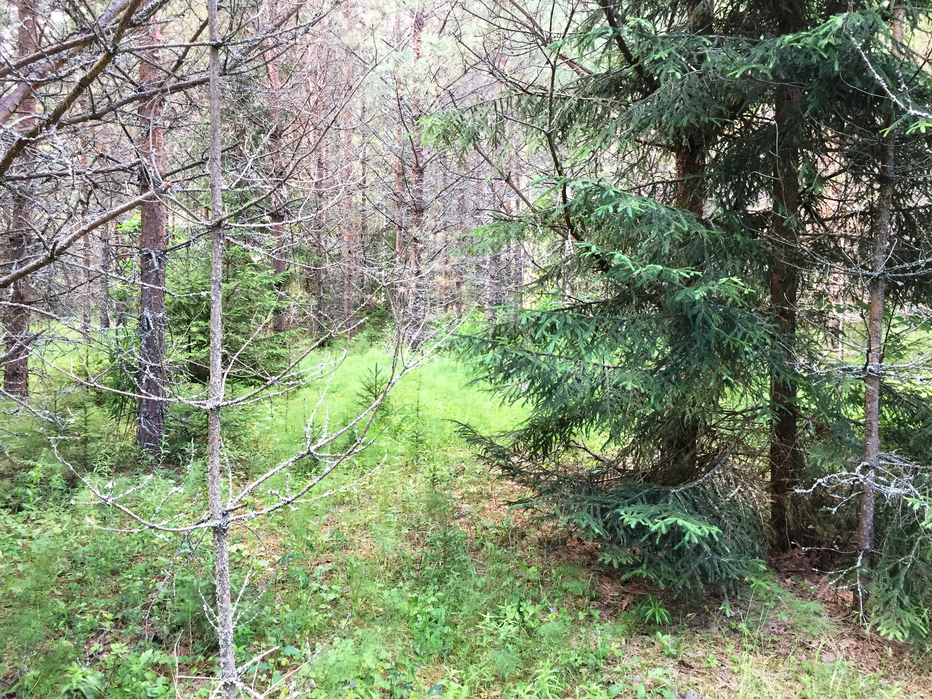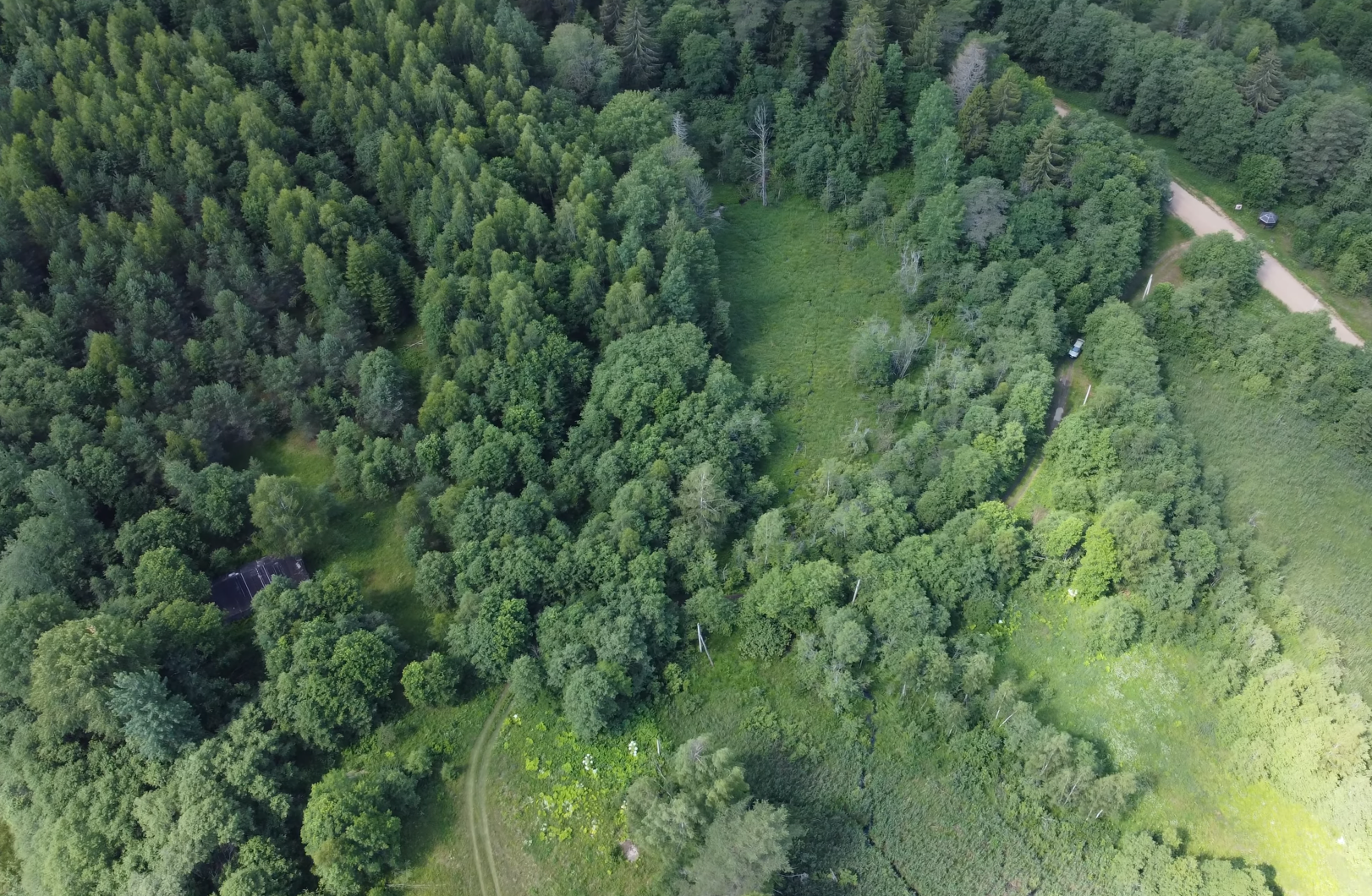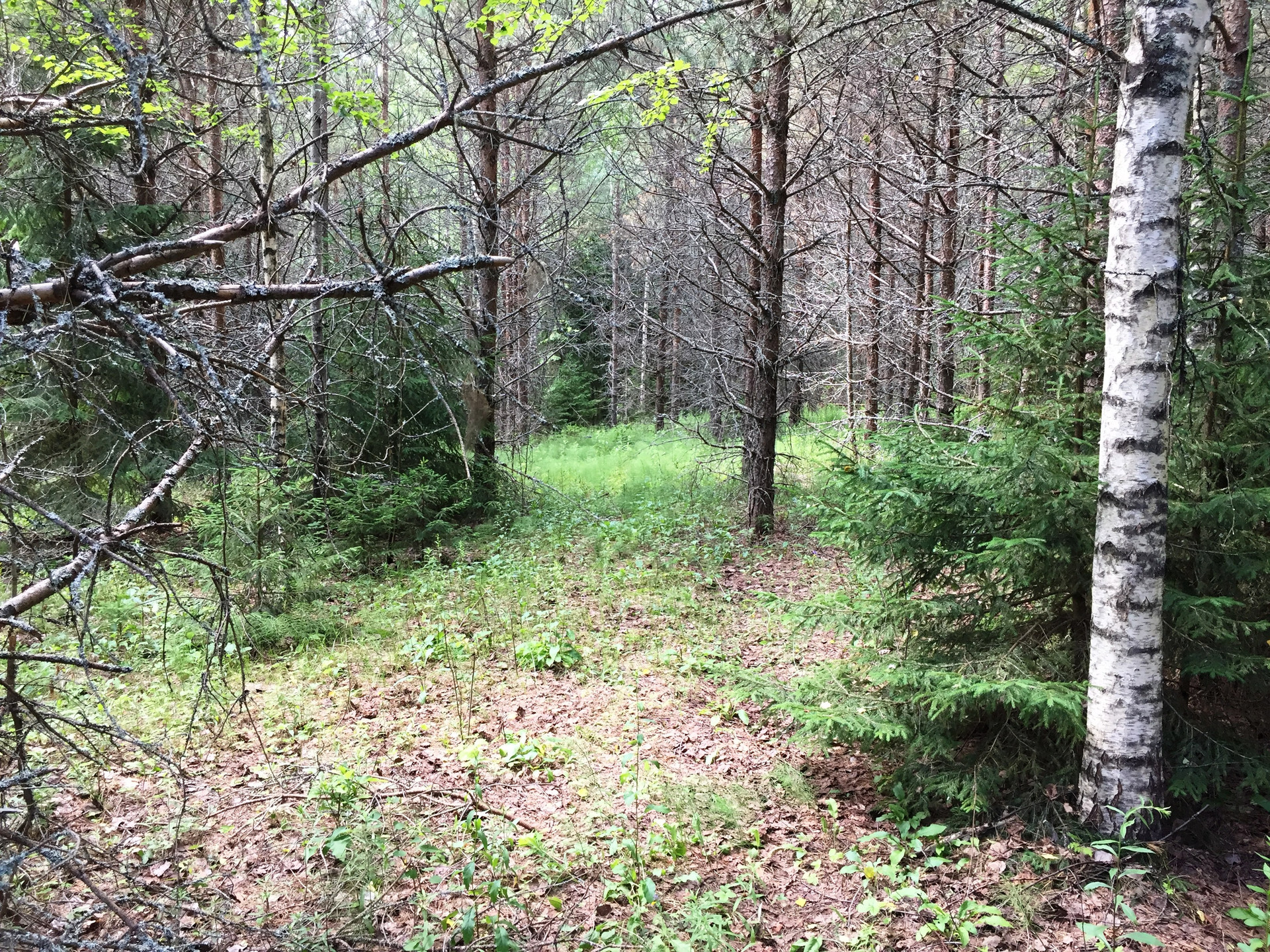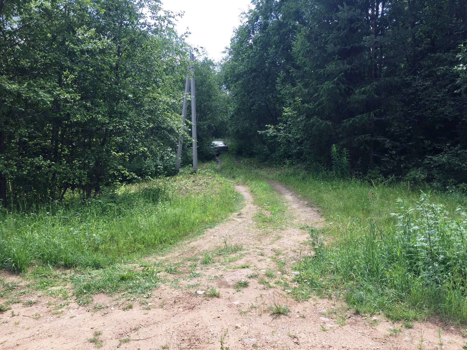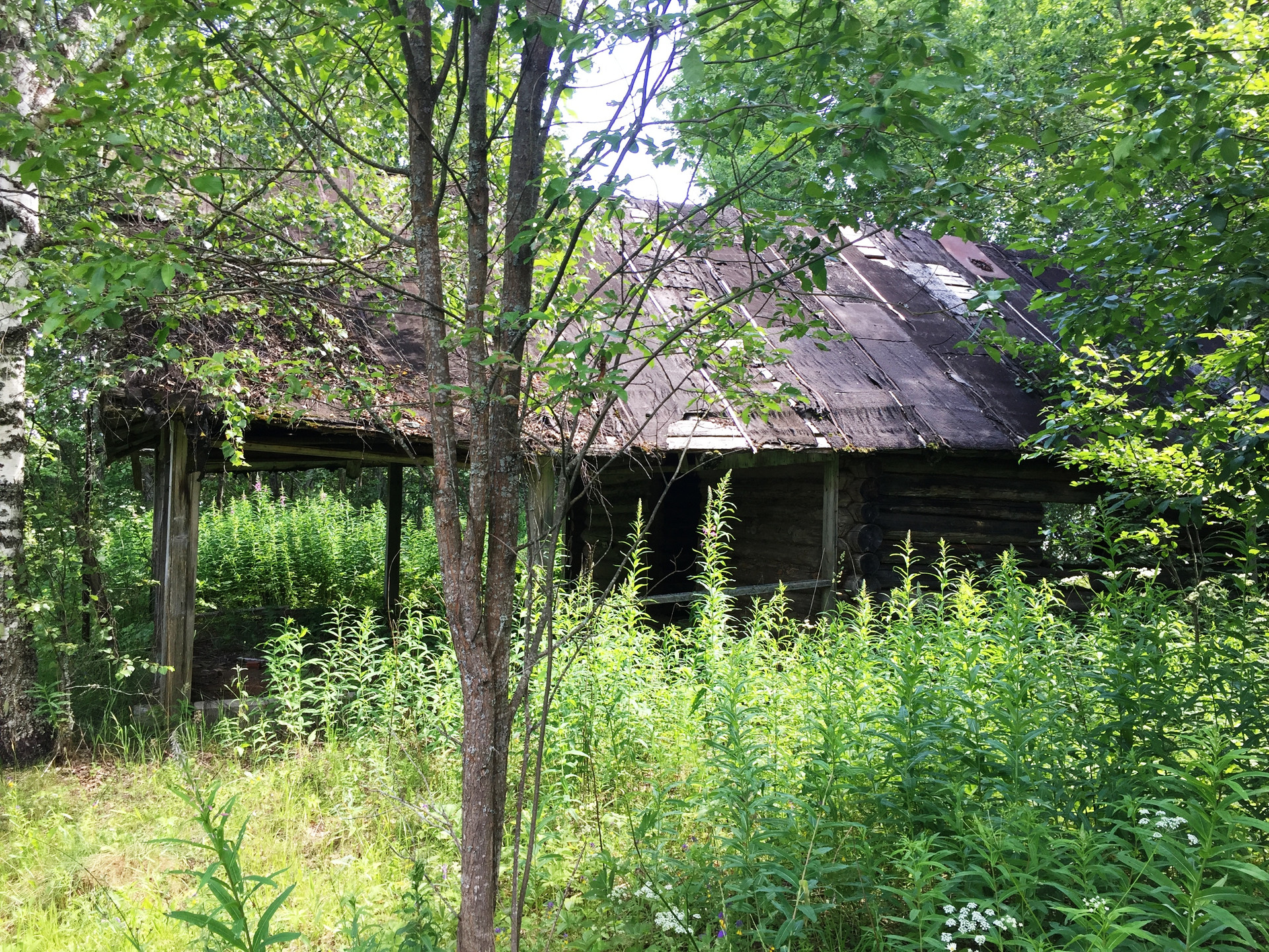 Ориентир - если смотреть на озеро - справа от домика. Домик ничей, стоит на ничьей земле. При входе на участок есть полянка, но по сути участок зарос лесом. Запрос на ТУ подключения электричества подан. Столбы стоят практически у участка. Участку присвоен адрес.