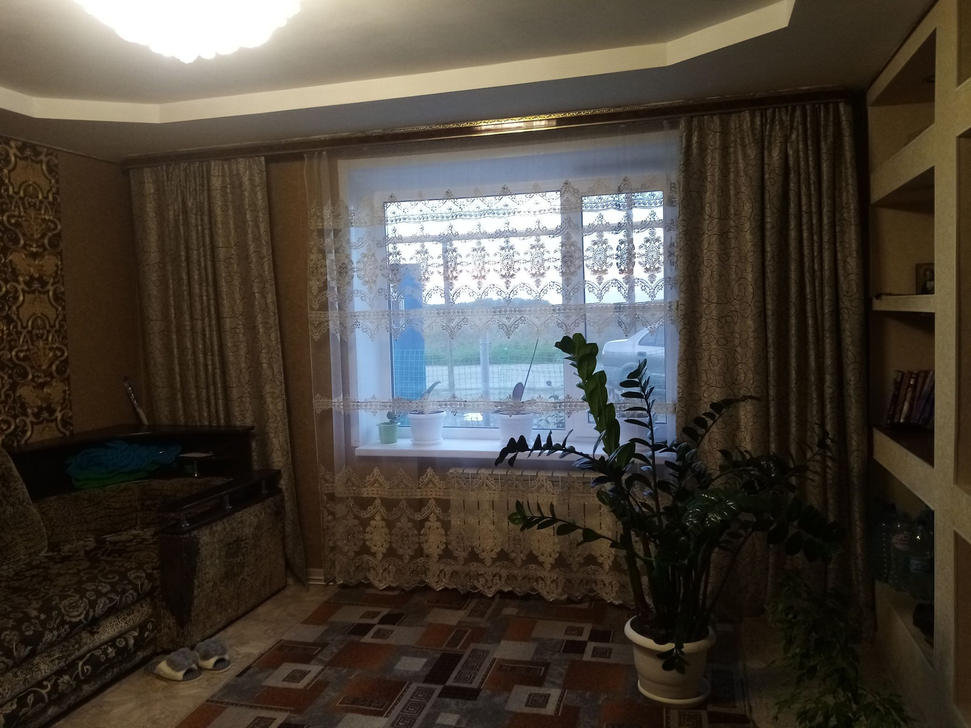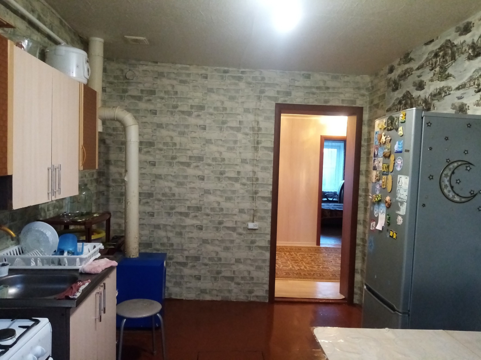 Продам трехкомнатную квартиру в доме с земельным участком. Квартира в хорошем состоянии, с ремонтом. Установлены евроокна. Есть хороший, обустроенный попол, высотой 2 м. Санузел в квартире, ванная чугунная. Новое отопление, новые евро батареи. Высокие потолки. Квартира просторная, светлая, комнаты большие, квадратные, большая кухня. Земельный участок ухожен, имеются разнообразные насаждения. Во дворе просторный гараж из шлакоблока на две машины.