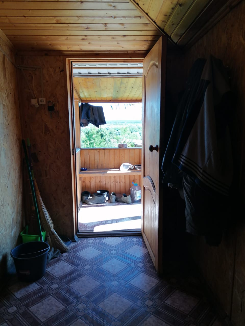 Комнаты 30м2 на первом этаже и 24м2 на втором этаже, на втором этаже мансарда для хранения, деревянные лестница.