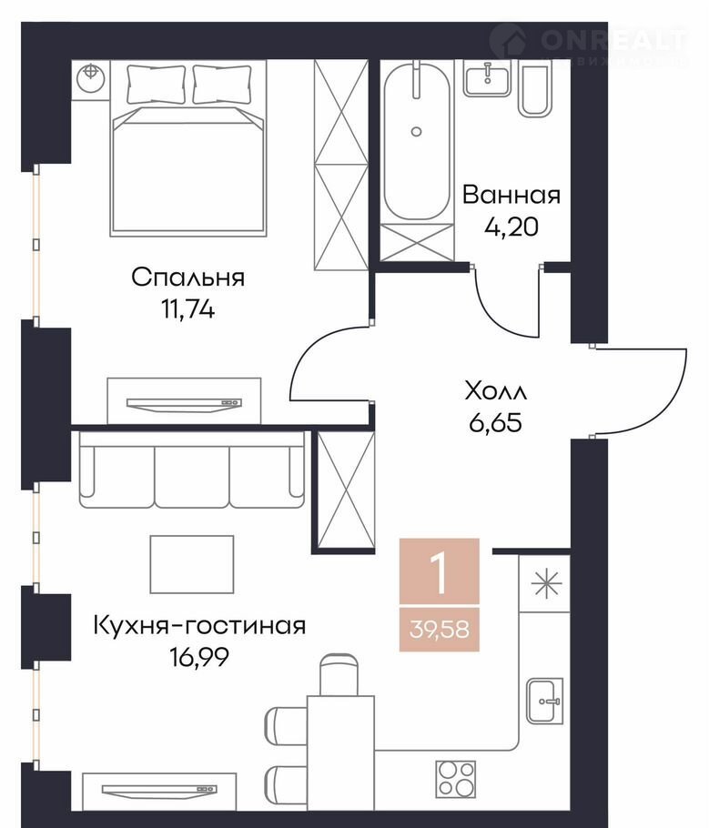 Общая площадь 39.6 м2