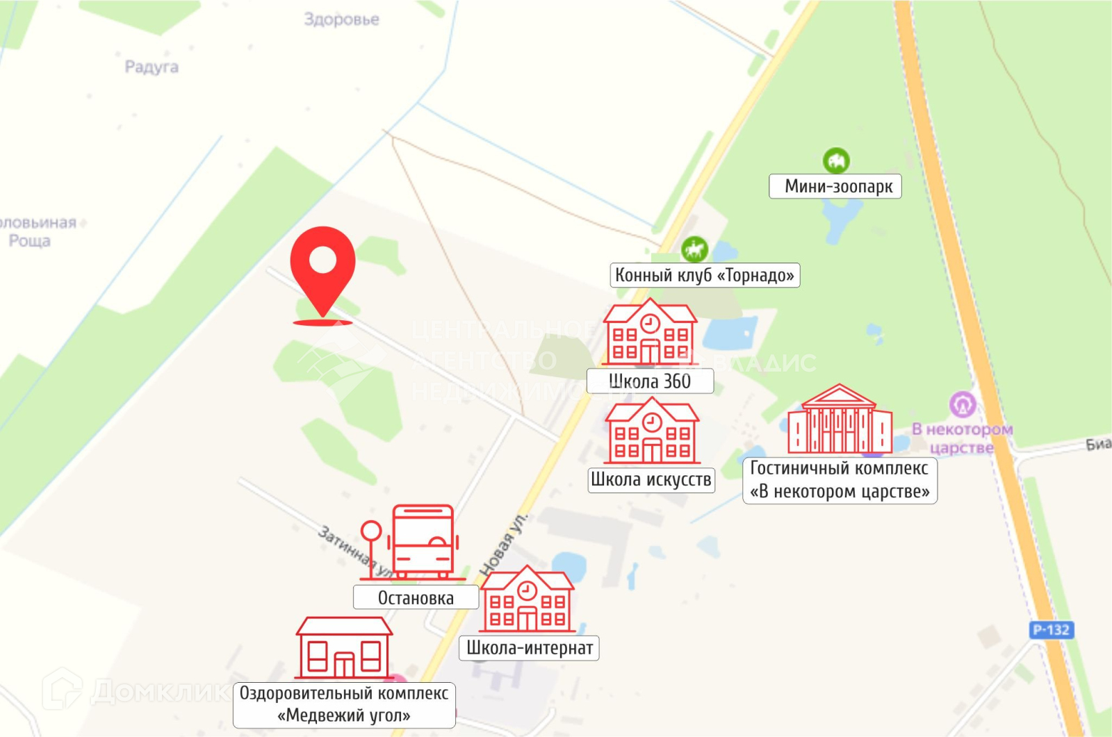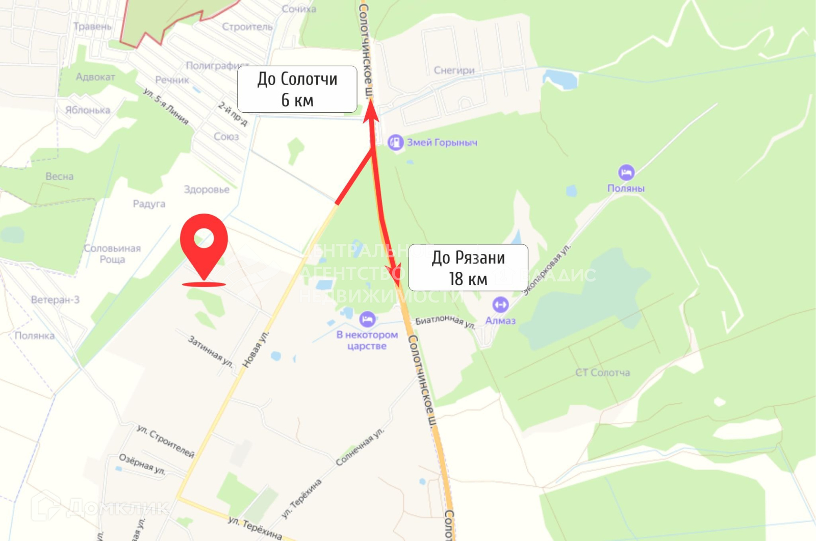 В 150 м от участков проходит федеральная автомобильная дорога Р-132 (Солотчинское шоссе). Примерно в 300 метрах располагается Развлекательный комплекс «В Некотором Царстве» и База отдыха «ФаZOOнда».