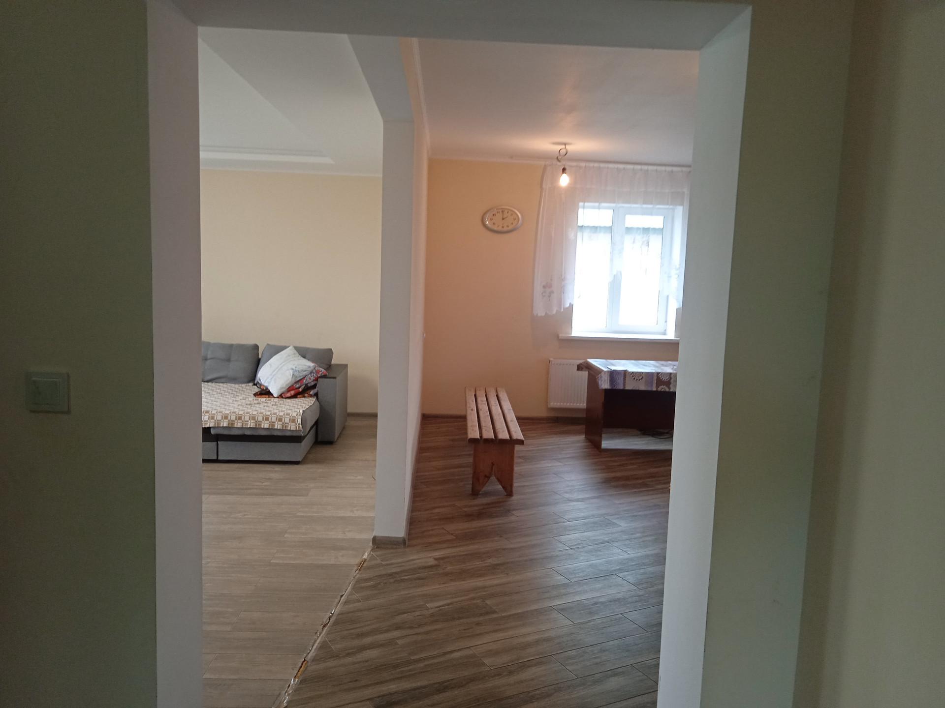 Дом очень уютный, теплый, светлый. На первом этаже объединенные просторные кухня и зал, прихожая, совмещенный санузел, спальня и котельная. Второй этаж мансардный, без ремонта, но имеется возможность обустроить его под жилые комнаты.