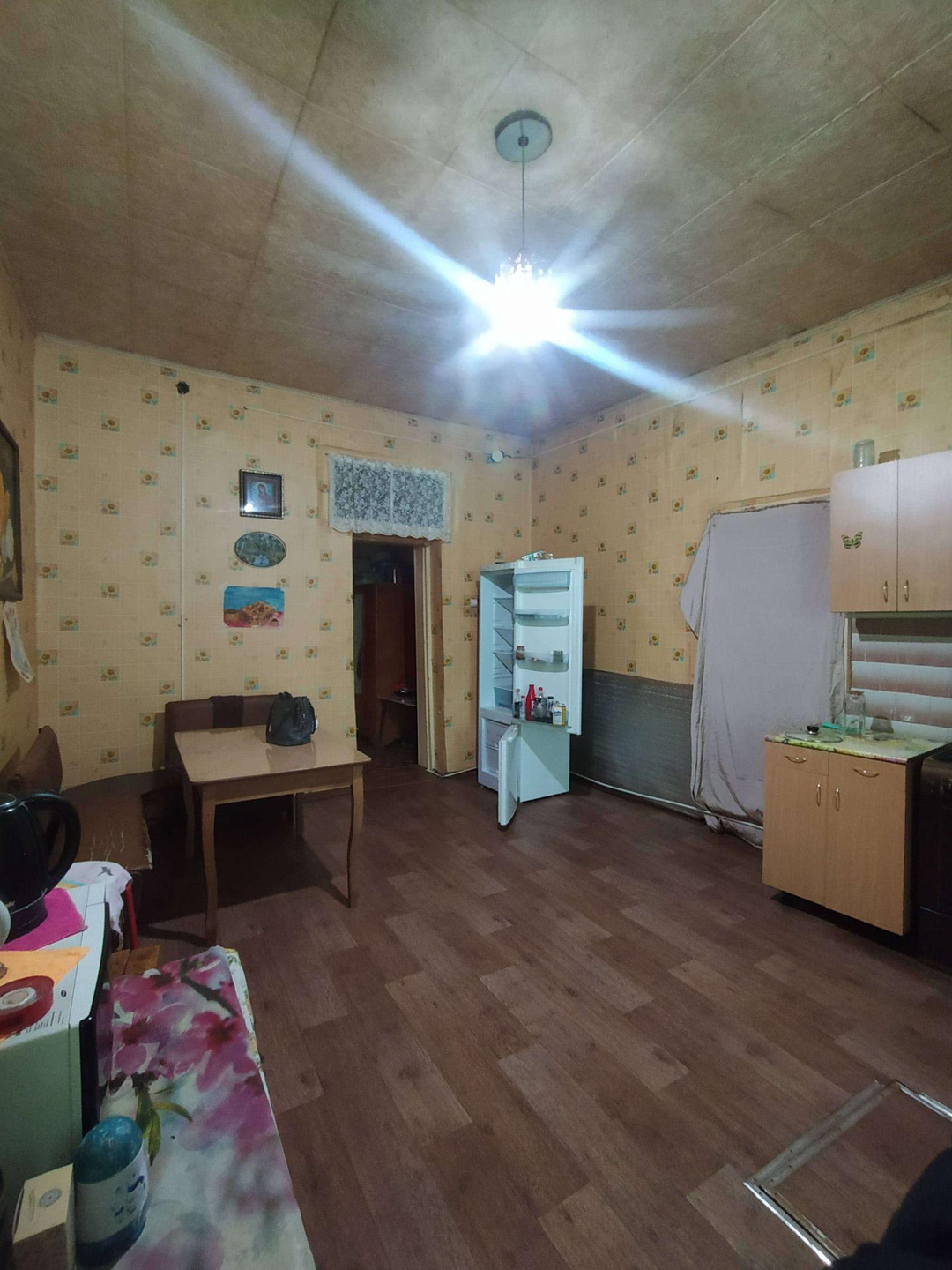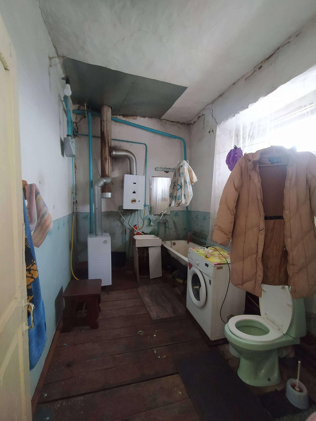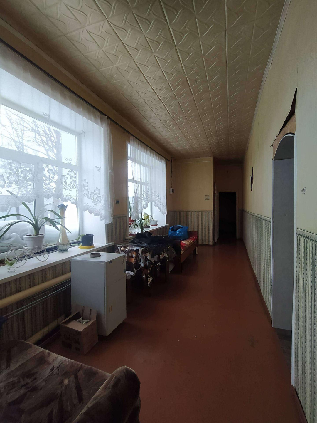 В доме :  совмещённый санузел,   горячая- холодная вода,  большие пластиковые окна, высокие потолки, две комнаты, зал, большой коридор - гостиная, кухня 15 кв.м, кладовая комната. Два выхода( железные двери) - на центральную улицу и во двор.
