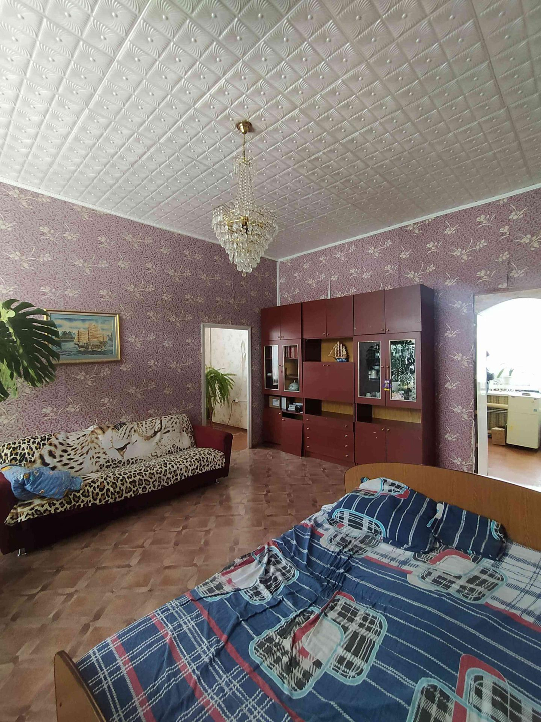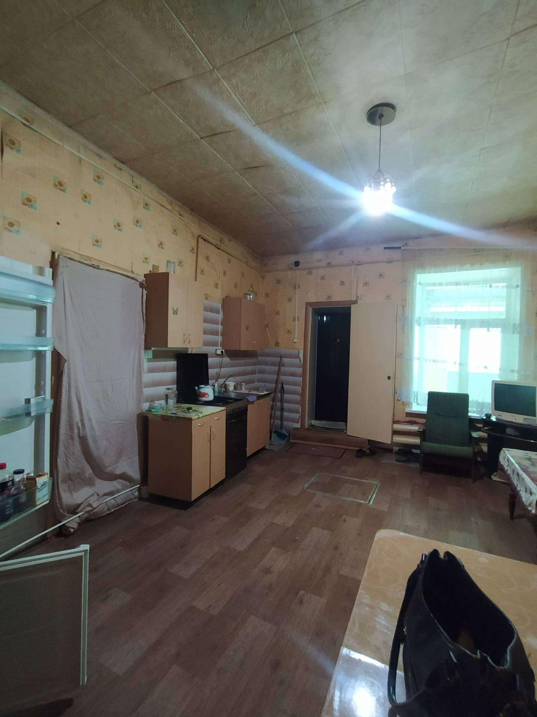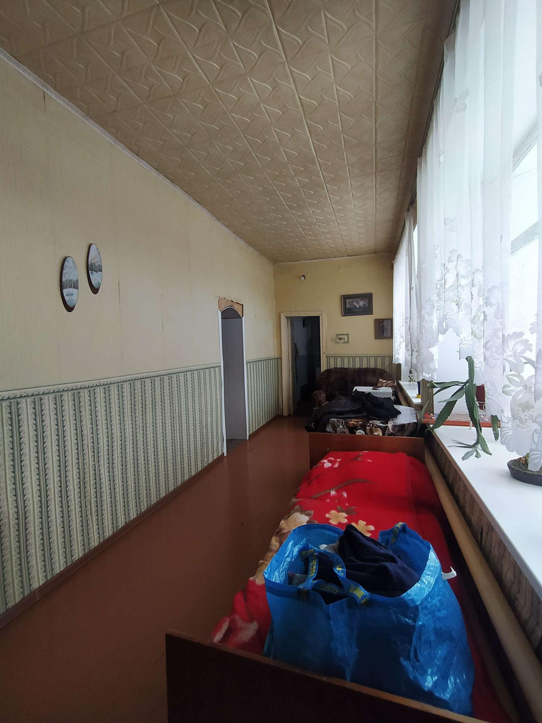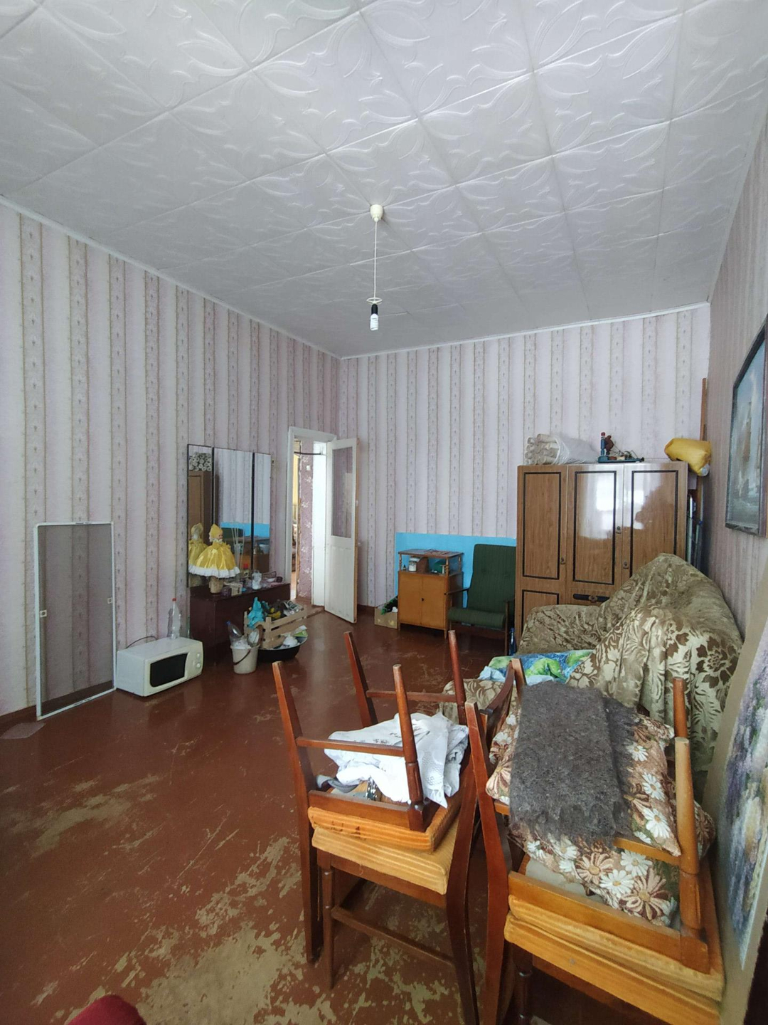 В доме :  совмещённый санузел,   горячая- холодная вода,  большие пластиковые окна, высокие потолки, две комнаты, зал, большой коридор - гостиная, кухня 15 кв.м, кладовая комната. Два выхода( железные двери) - на центральную улицу и во двор.