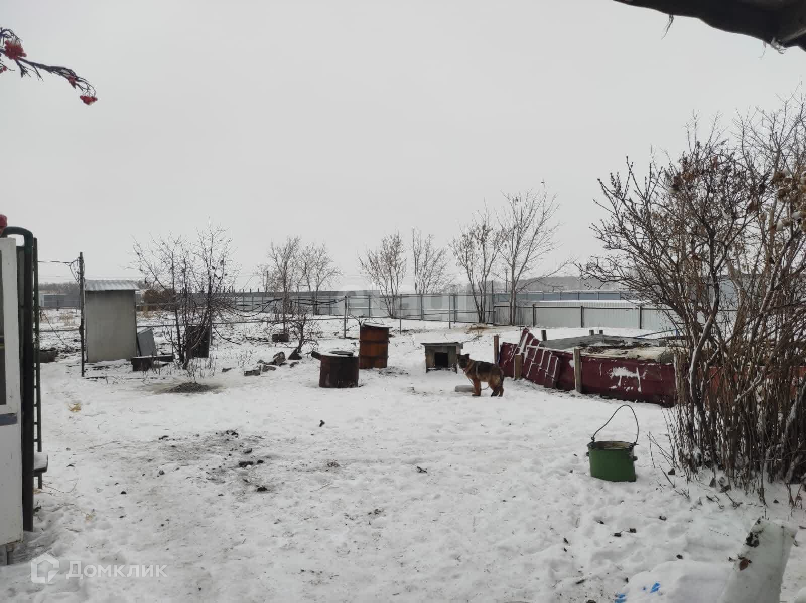 Вся территория огорожена профнастилом.