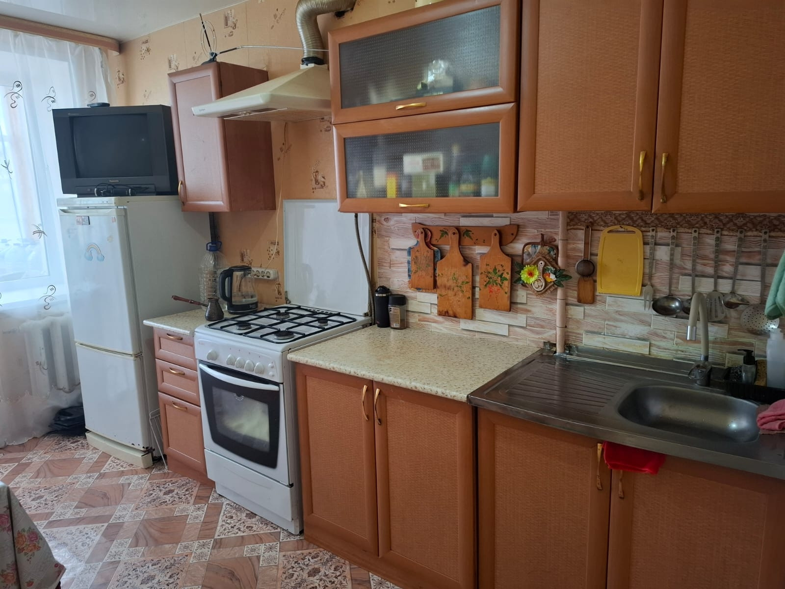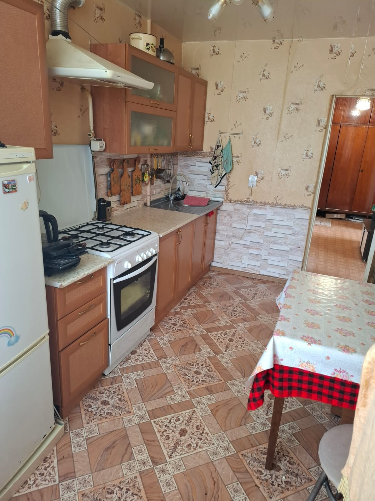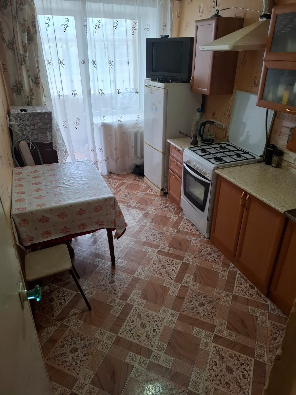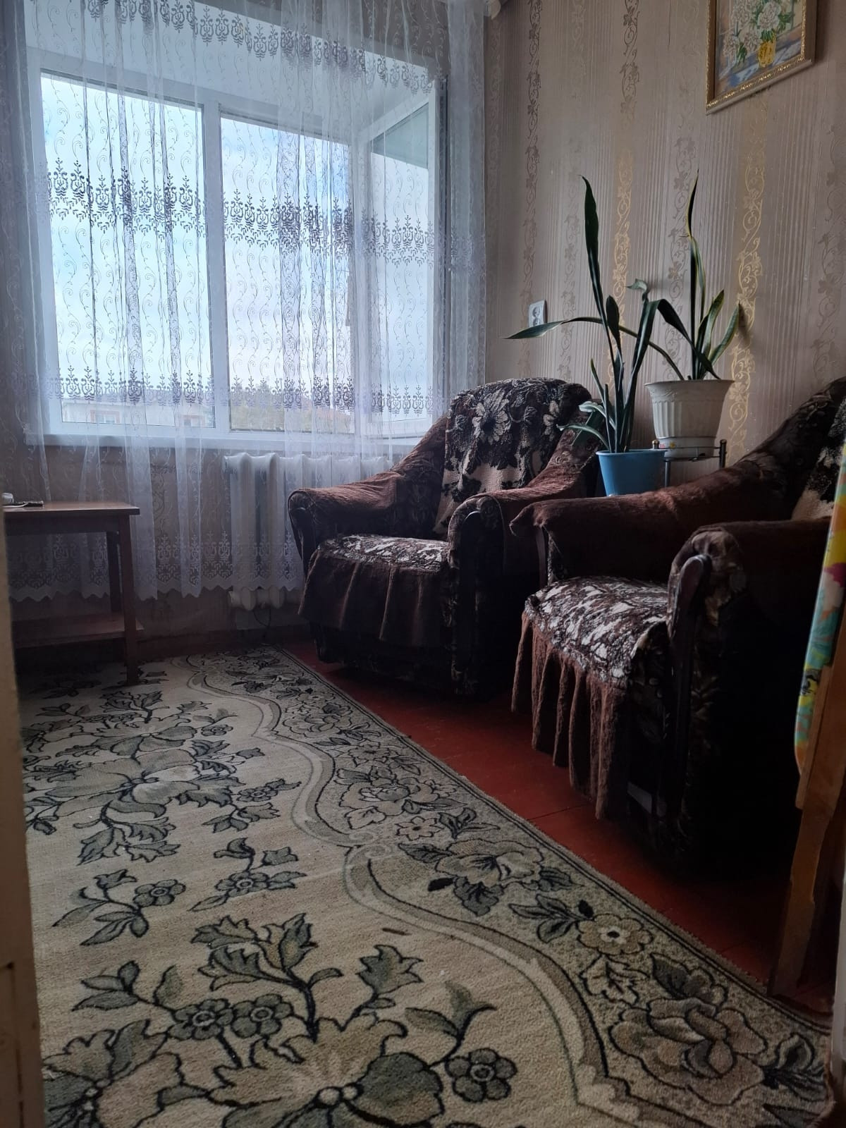 Квартира 45.7 кв.м, на 1 этаже 2-этажного кирпичного дома. Кухня просторная, 9.7 кв. Балкон. Санузел раздельный. Окна пластик, металлическая входная дверь. Под окнами 2 огородика, 2 подвальных помещения для хранения заготовок. Всю мебель можем оставить. Квартира требует ремонта.