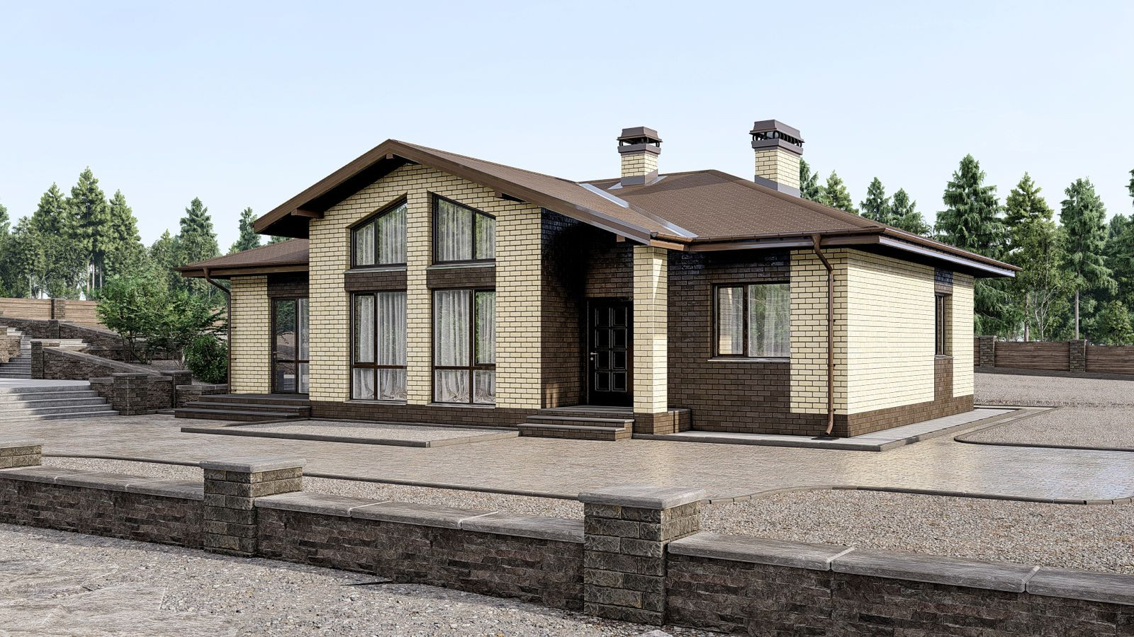 Акцент дома - панорамные окна в пол в гостиной. Площадь гостиной 26,3 м².