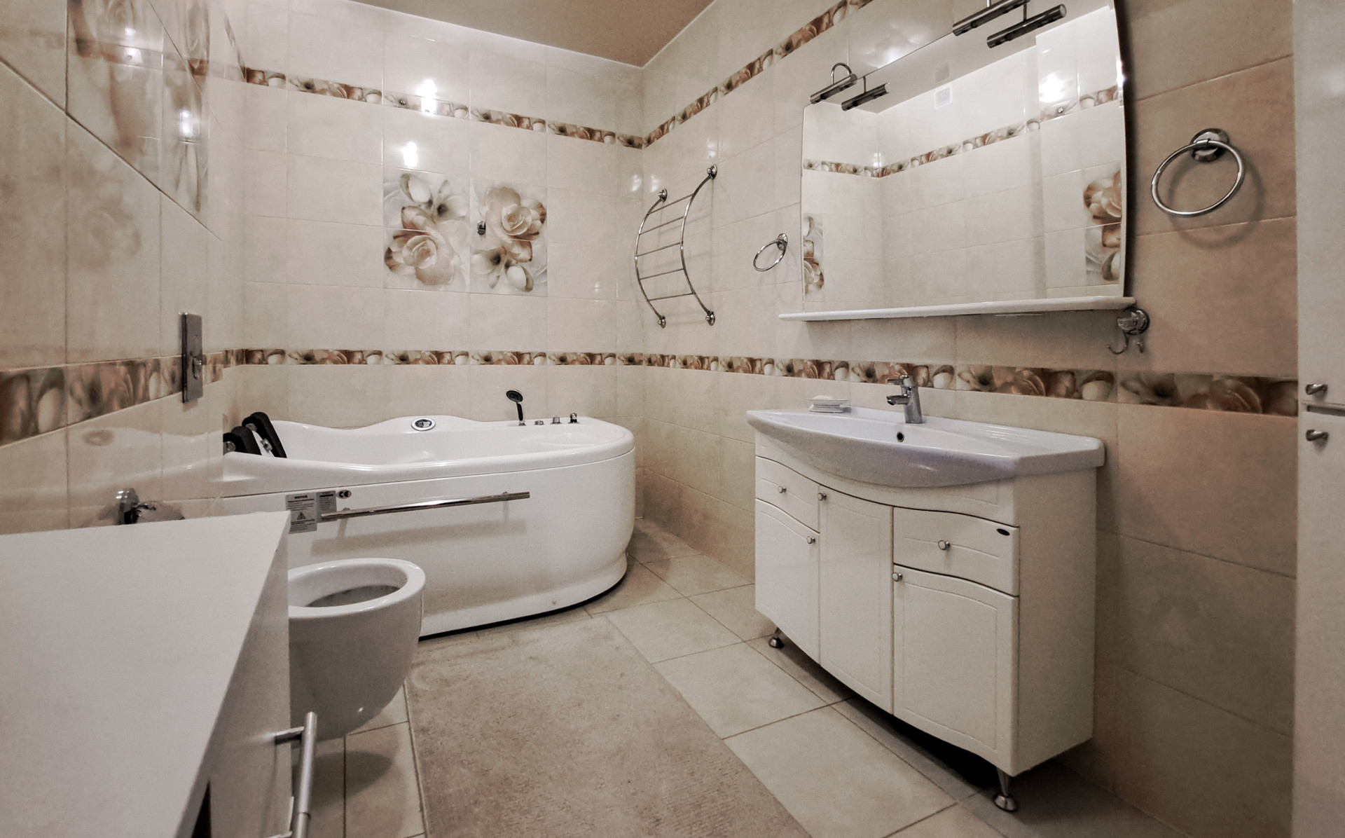 Вся площадь первого этажа оборудована регулируемым теплым полом с покрытием из керамогранита.