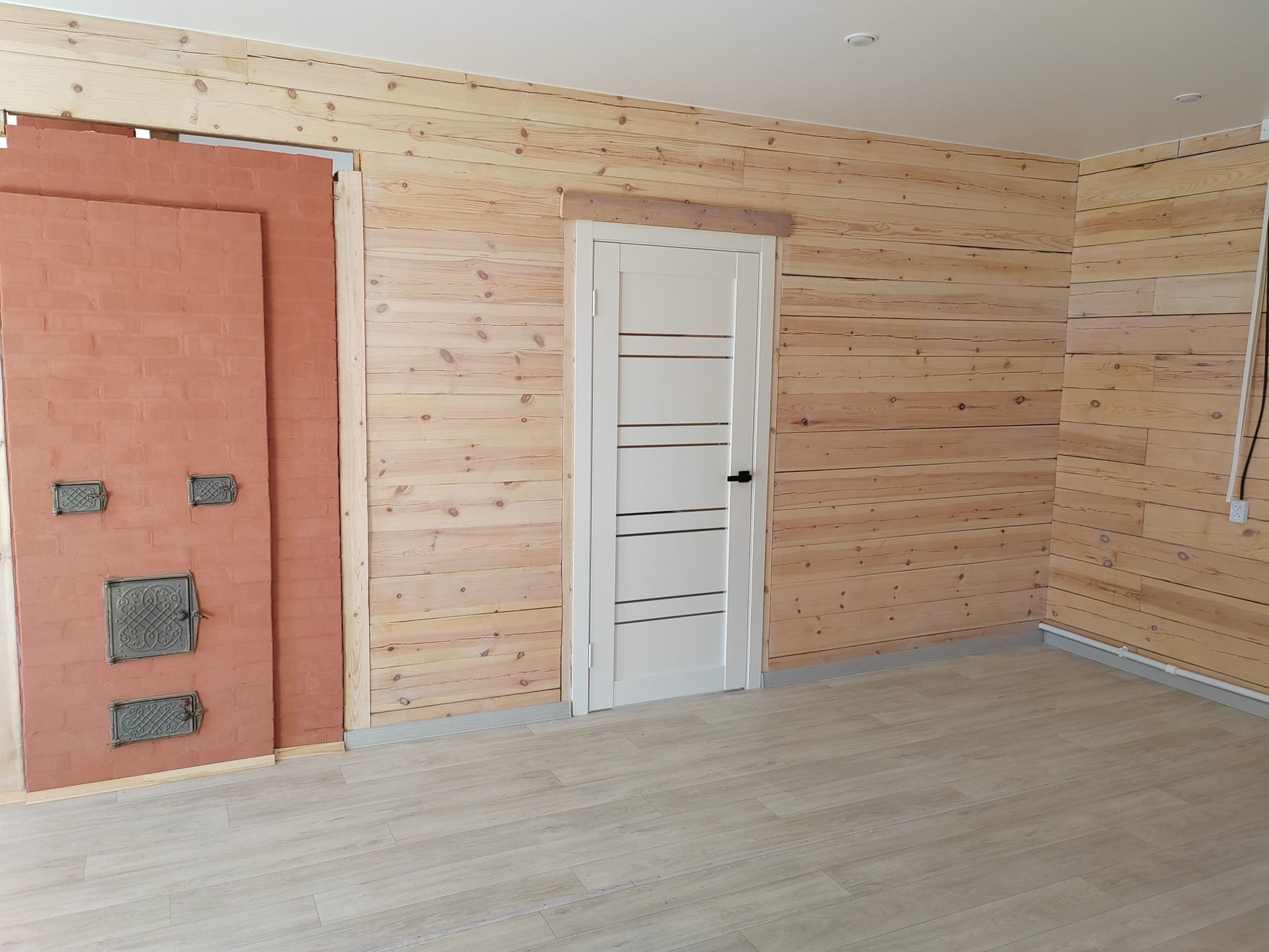 В доме стены струганые и окрашены специальной защитной краской.