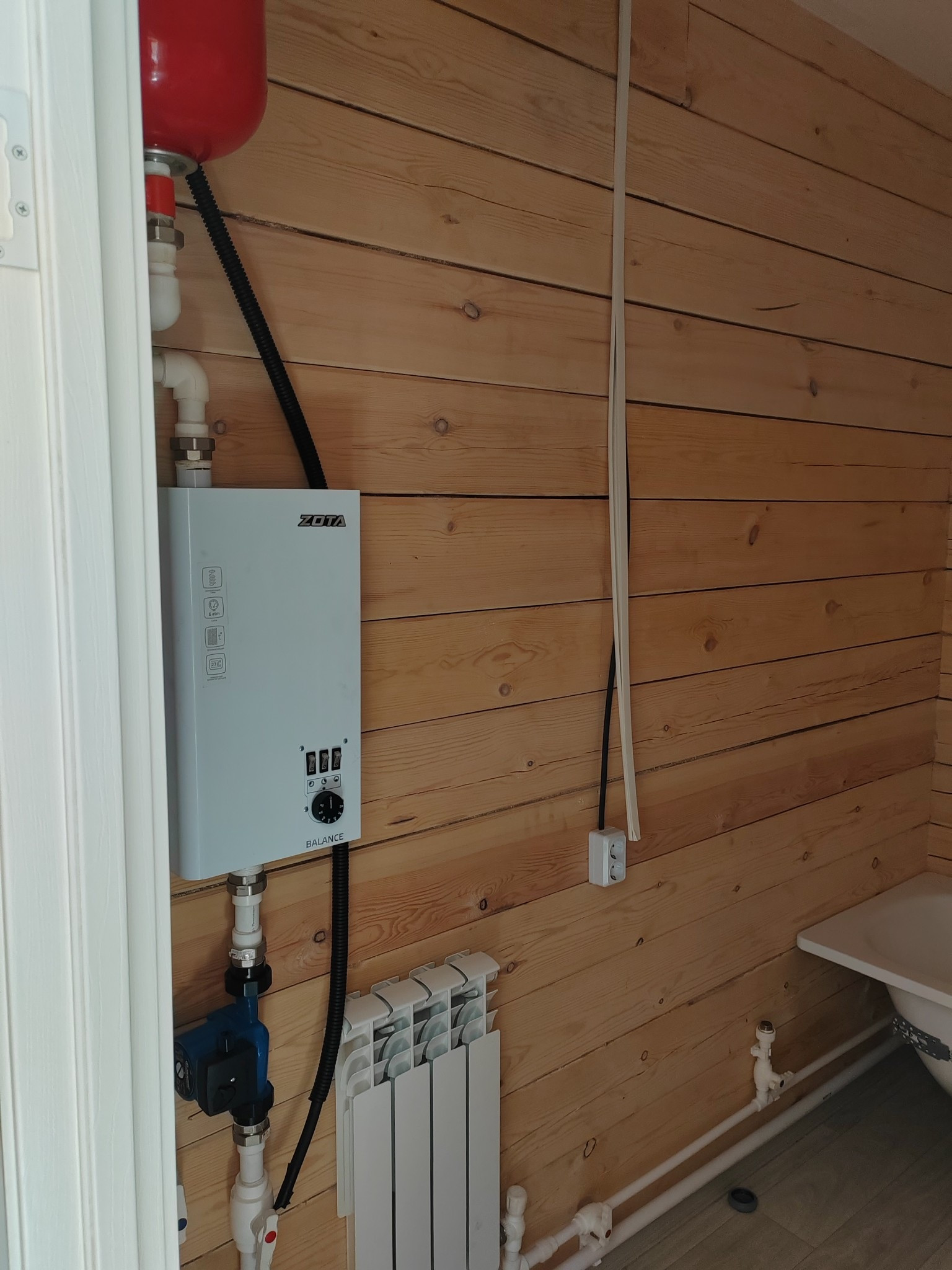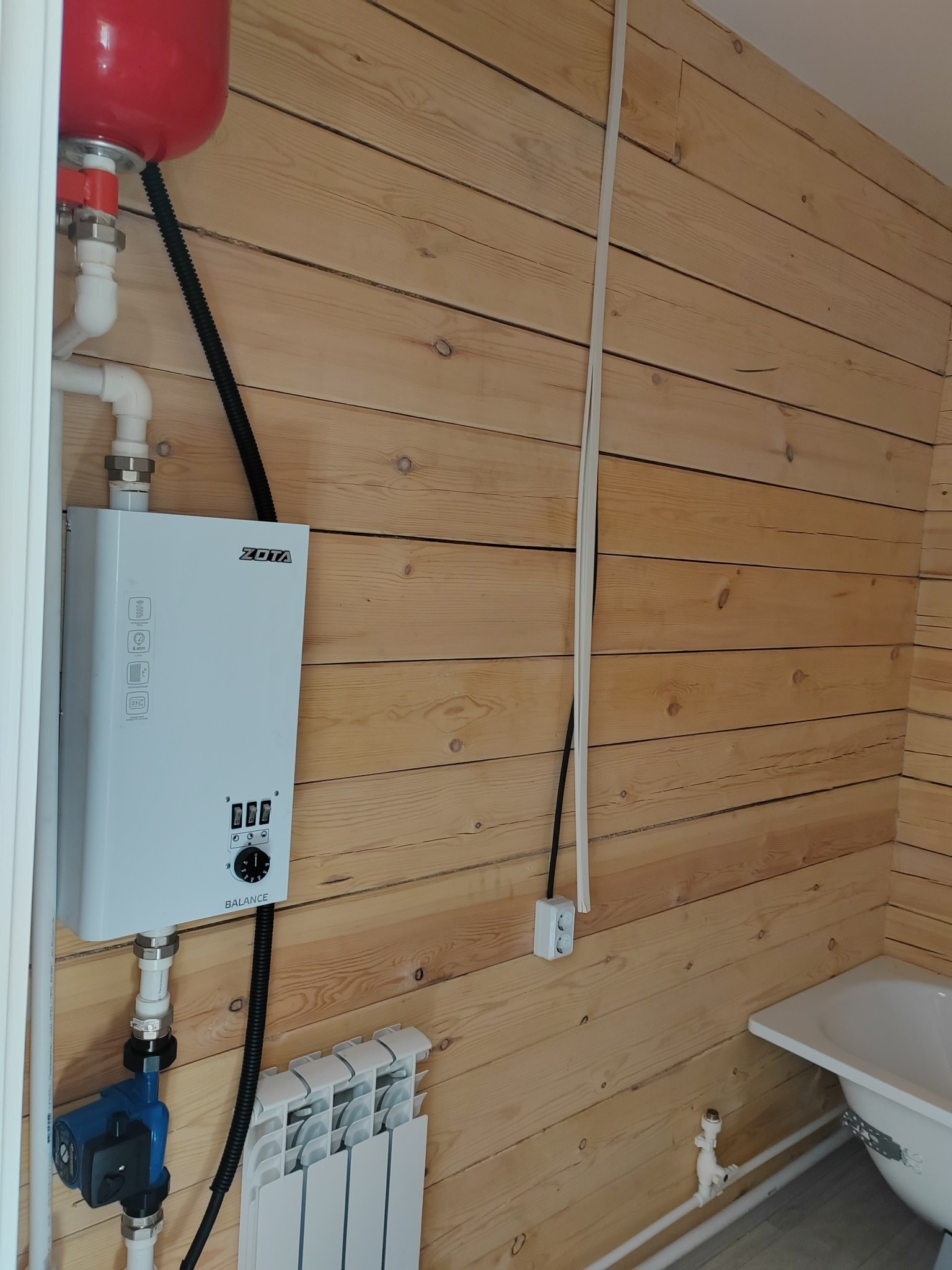 В доме печное отопление и электрокотел с батареями.