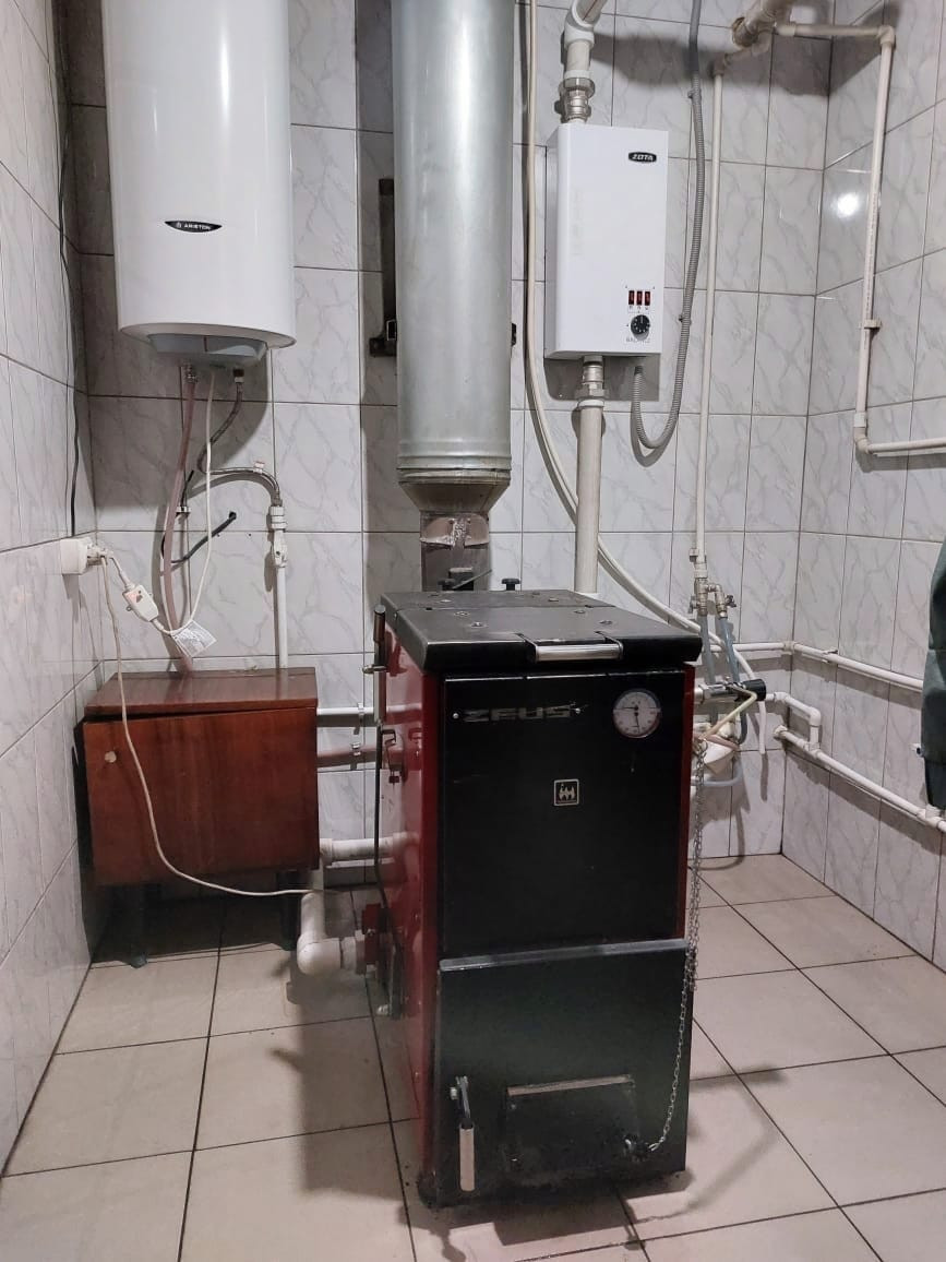 В квартире выполнен дорогой и качественный ремонт, натяжные потолки во всем доме, полы в кухне и ванной комнате с подогревом. Санузел совмещенный. Так же в доме присутствуют: большая летняя веранда, кладовая, топочная, погреб, а так же гараж, расположенный прямо в доме. Отопление печное (котёл длительного горения Зевс, электокотел Зота).