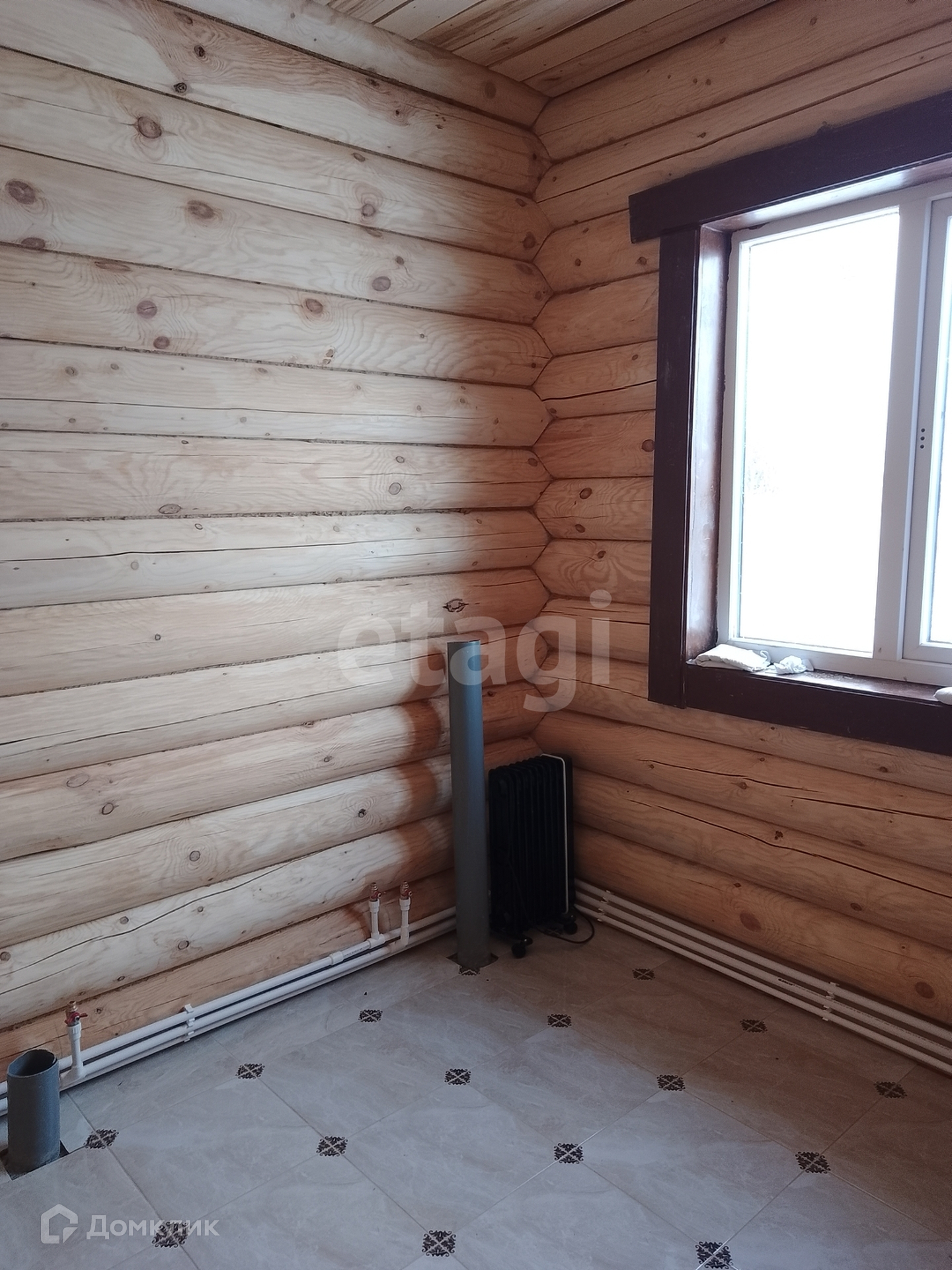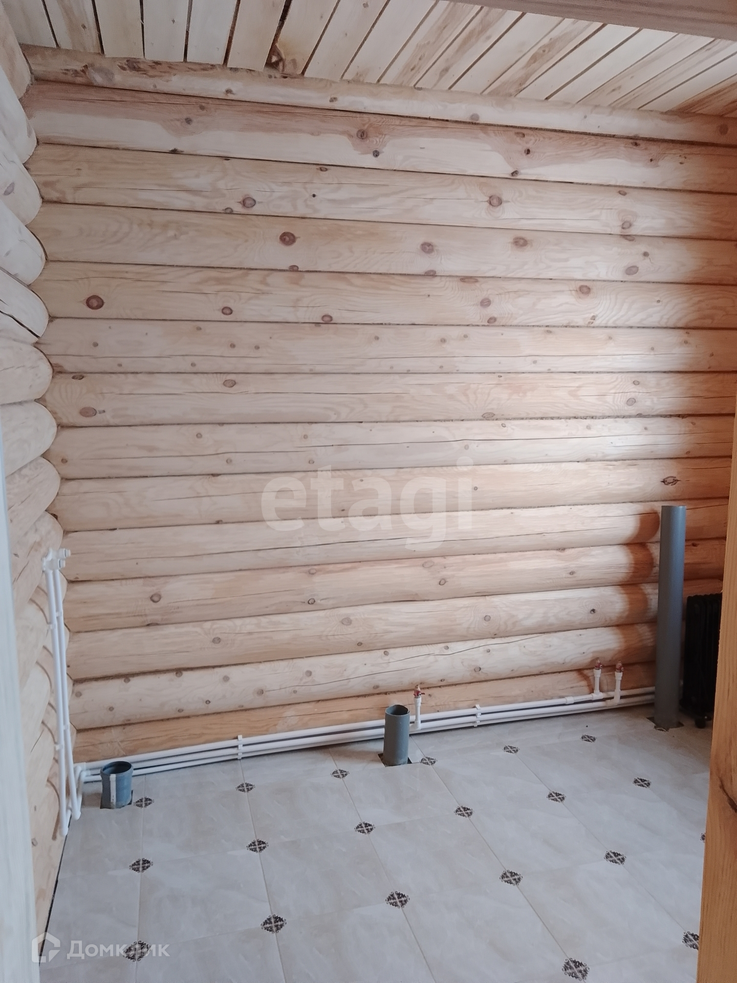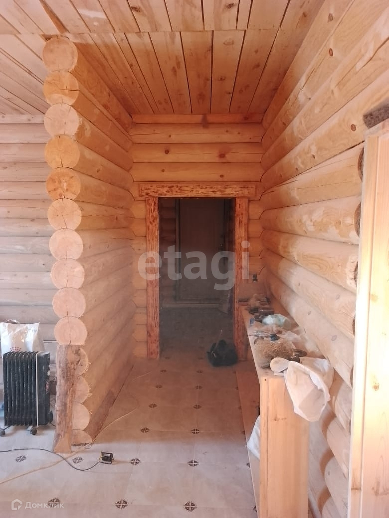 Продаётся 1 -этажный дом из оцилиндрованного бревна. Дом новый. В доме зал совмещён с кухней, три спальни, санузел, котельная со вторым сан узлом, по всему дому уложены теплые полы. Дом находится на тихой улице в 150 метрах от соснового леса. Тихое место для комфортного проживания позволит Вам наслаждаться жизнью вдали от городской суеты. В деревне есть магазины, школа, детский сад, клуб, медпункт. Через деревню протекает речка. В город каждый час ходит автобус, до остановки от дома 5 минут ходьбы. До города всего 10 км, 15 минут езды.