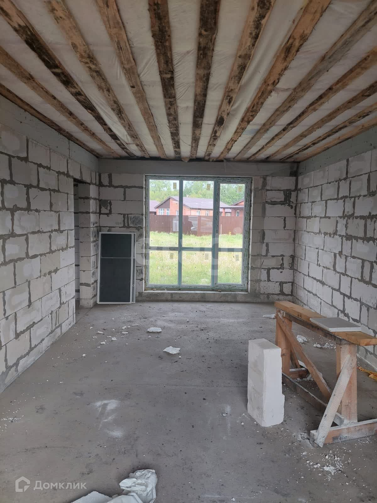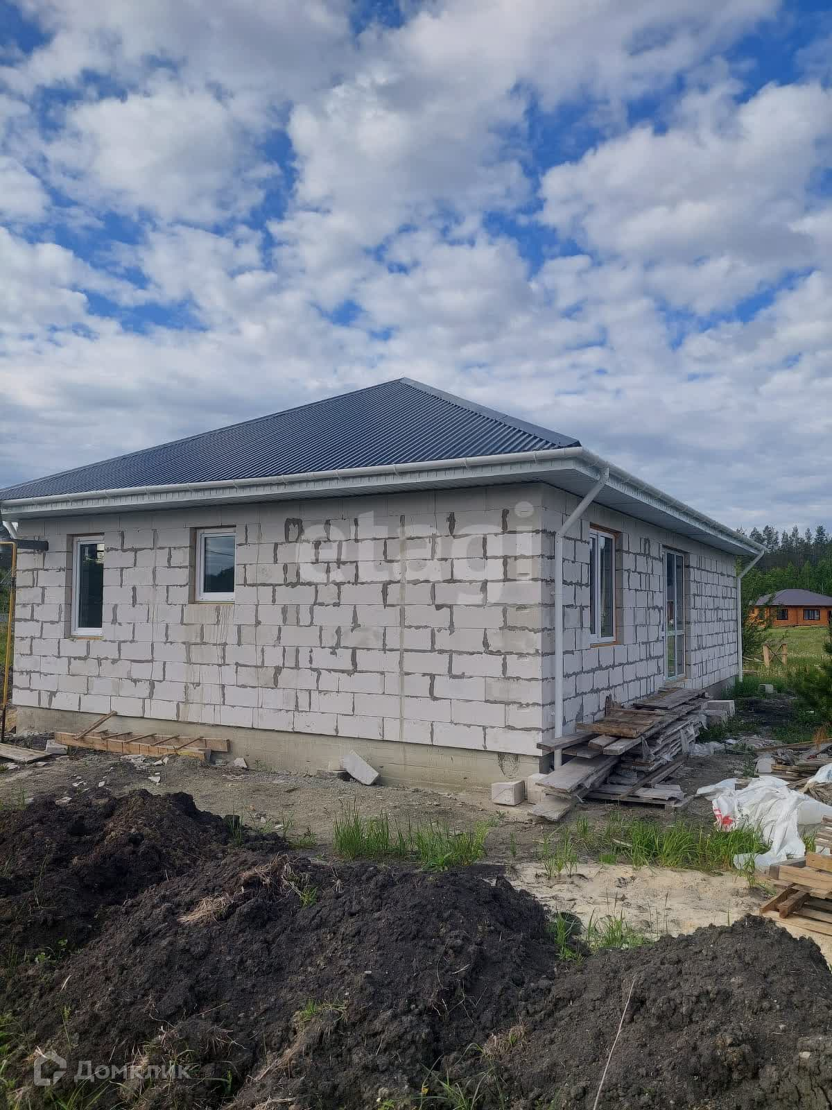 Площадь представленного дома 90 м2, 3 спальни, кухня-гостиная, туалет, гардеробная и коридор. Дом из пеноблоков 400мм, внутренние перегородки 200мм. В доме выполнена разводка электрики(до 15 кВт), воды (артезианская) и канализации (выгребная яма). Выполнена полусухая стяжка пола. Установлены: газовый котёл, окна ПВХ и надёжная входная дверь .