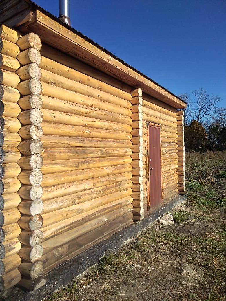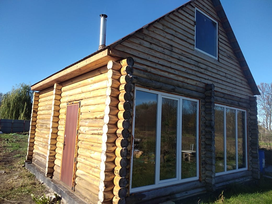 — Сруб пятистенок из северной осины, перекрыт металлочерепицей.