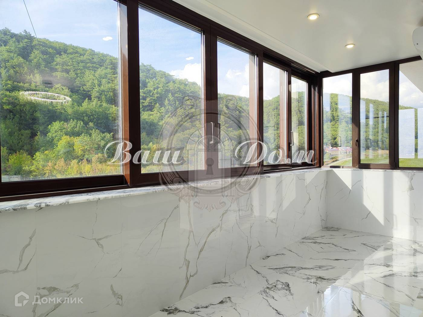 - Потрясающие виды на горы и виноградники, панорамное остекление. Кухня - гостиная 35 м.кв., две изолированные спальни, совместный санузел. Новый качественный ремонт, продается без мебели.