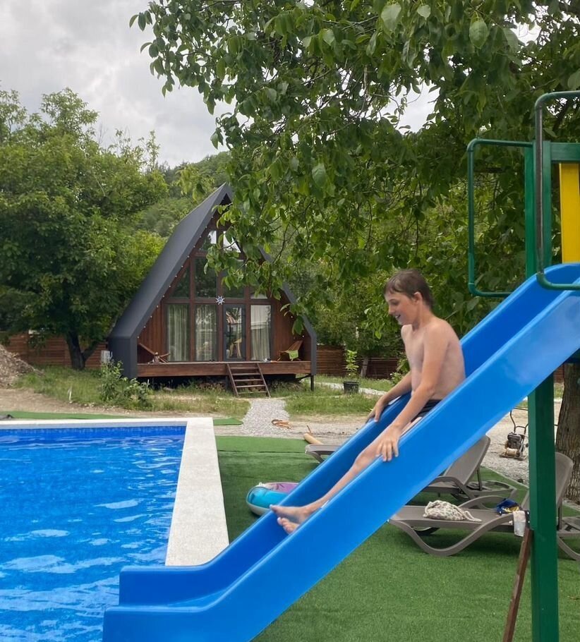* Отдeльная взpоcлая горкa сo спускoм прямо в бассейн.