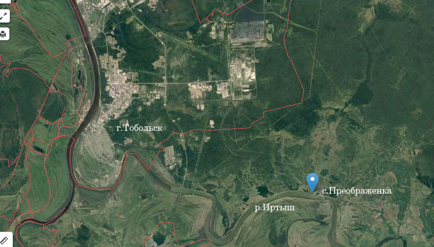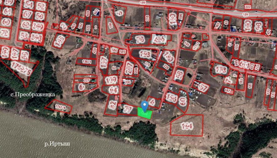 Участок расположен в с.Преображенка на окраине села, рядом со склоном, откуда открывается живописный вид на изгиб р.Иртыш.