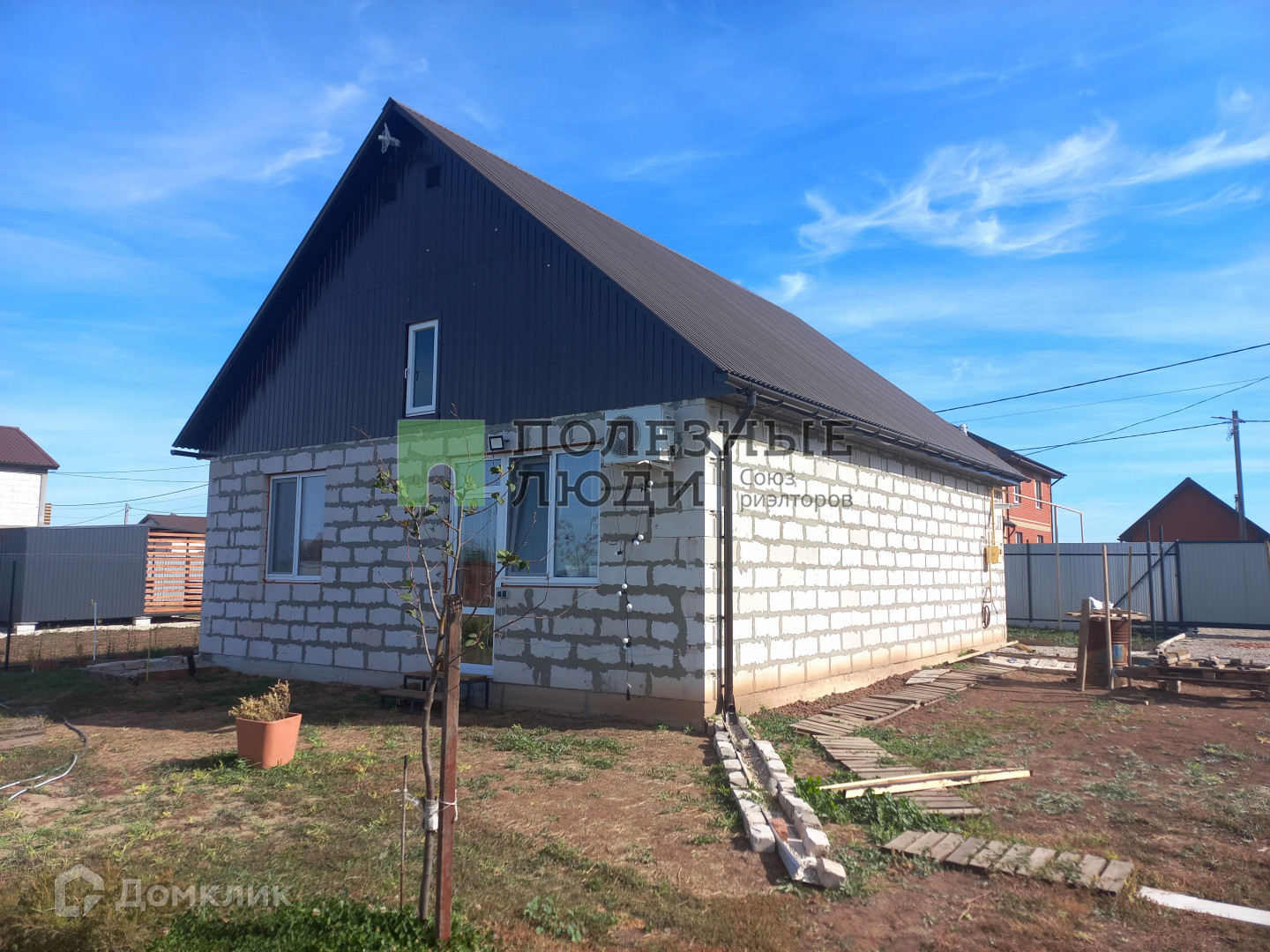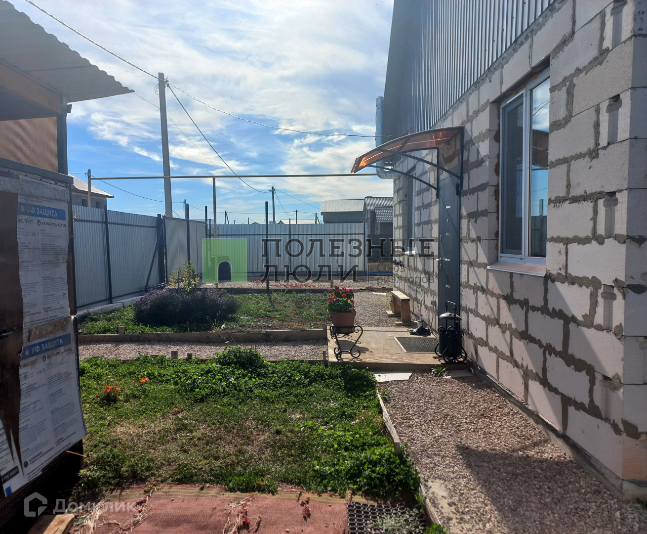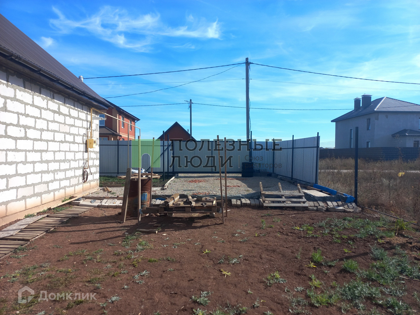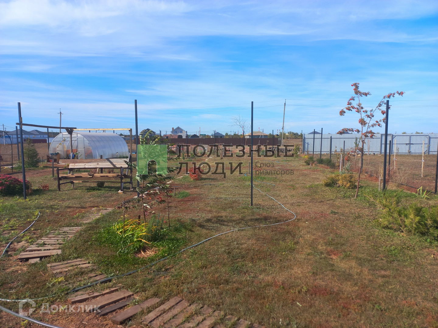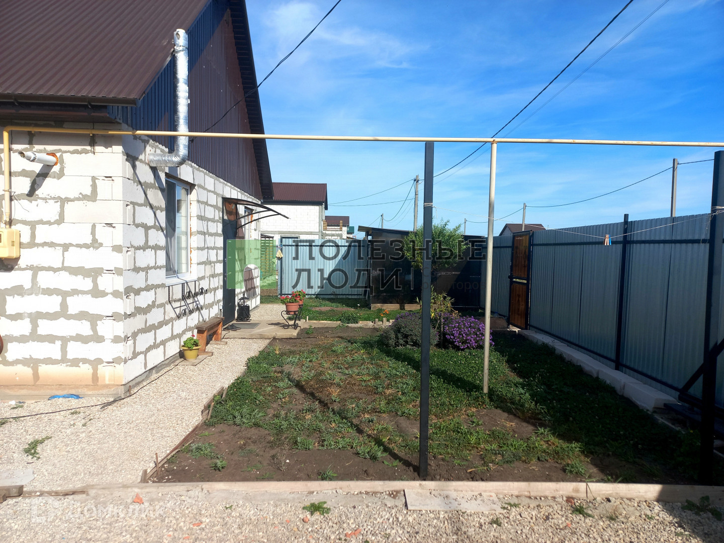 - участок огорожен забором по периметру: фасадная часть из профлиста, между соседями сетка;