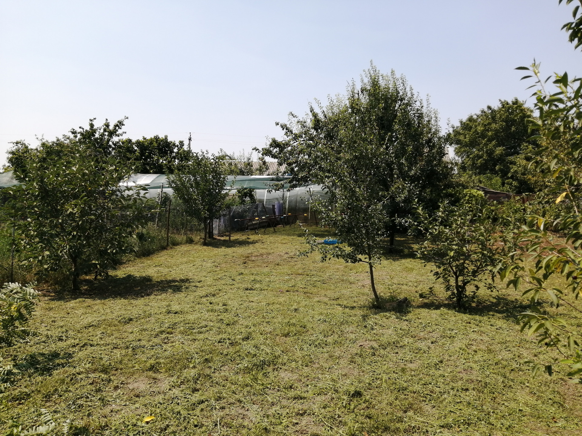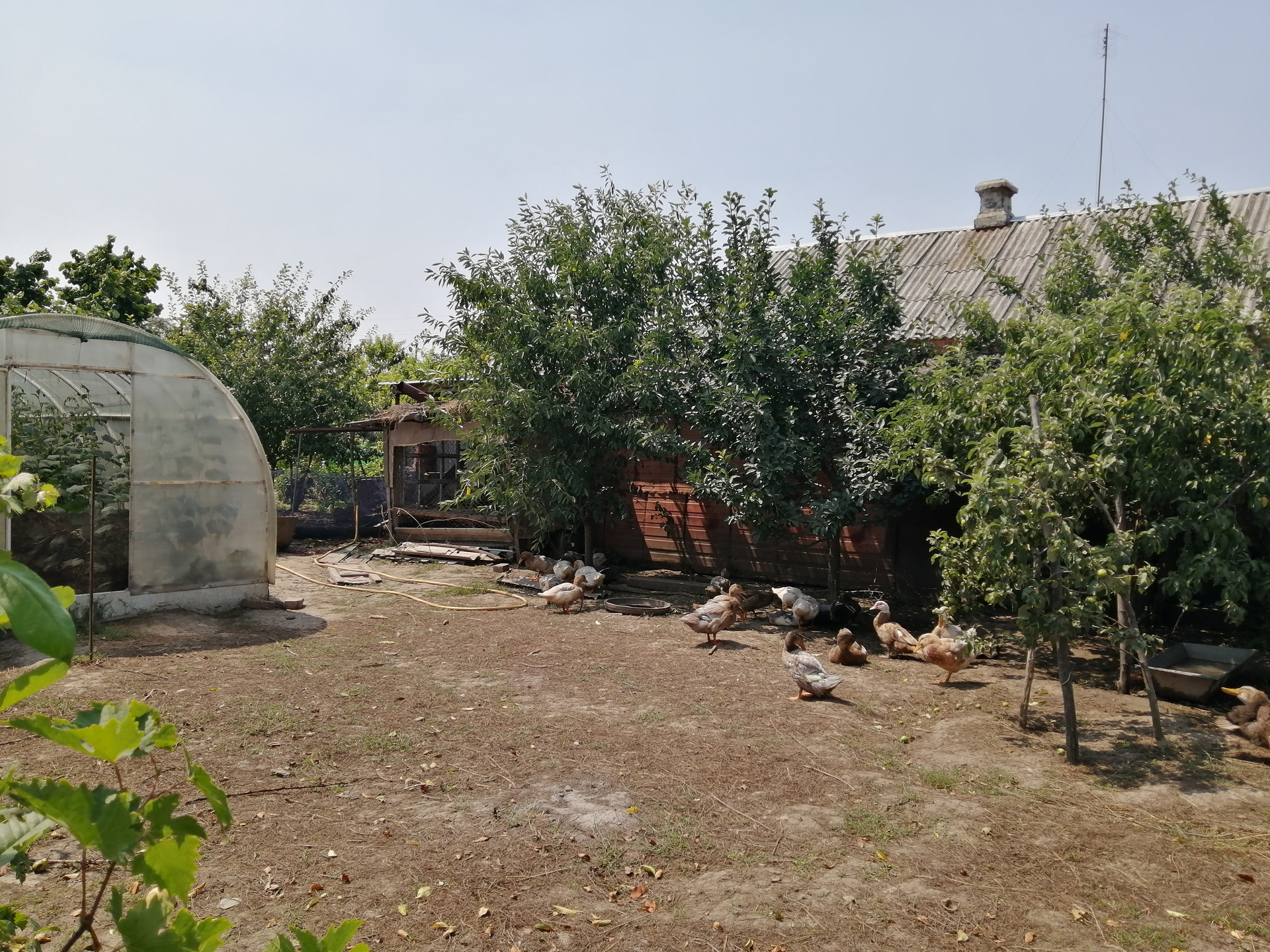 Много фруктовых деревьев, кусты красной, черной смородины, малина, крыжовник.
