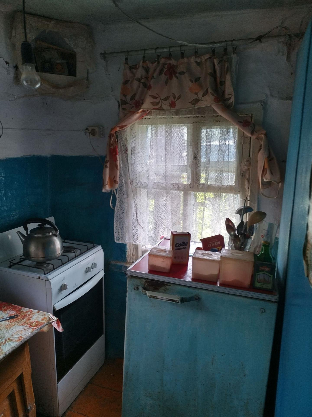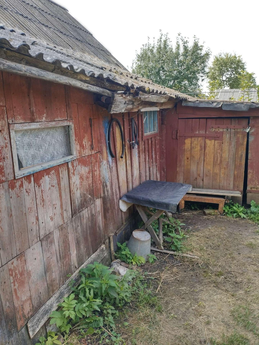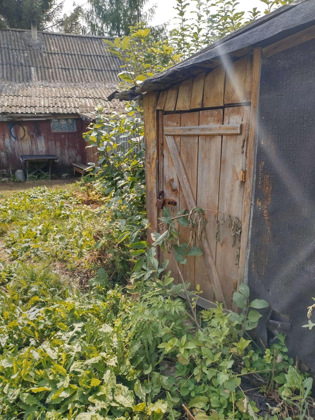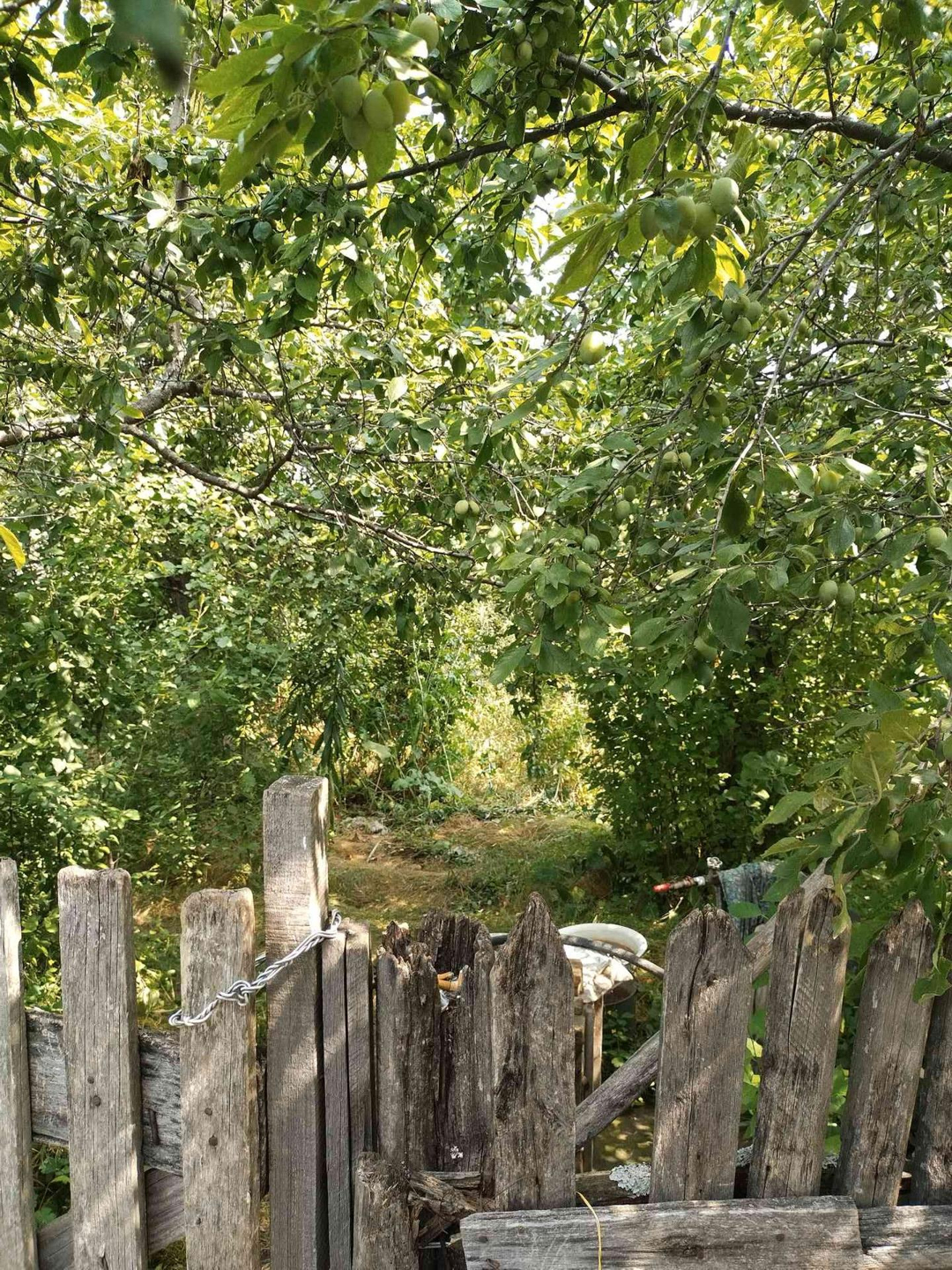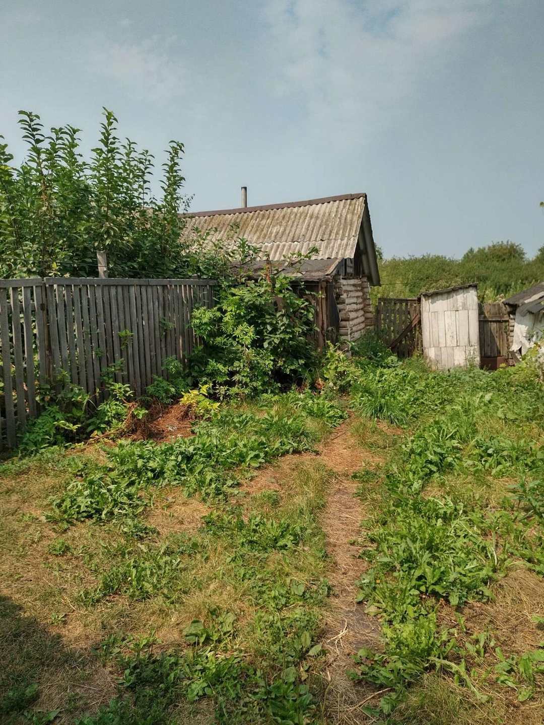 В саду скважина с насосом, газ проходит по улице, в доме газовые баллоны, электричество в доме, баня по белому, погреб, фруктовые деревья (слива, яблоня), жомовая яма бетонированная.