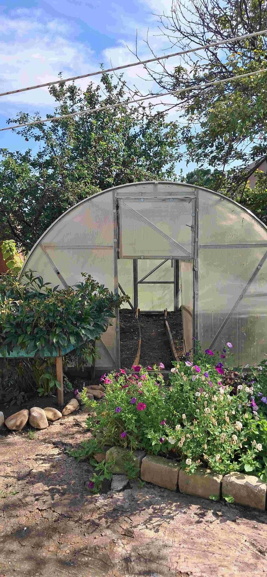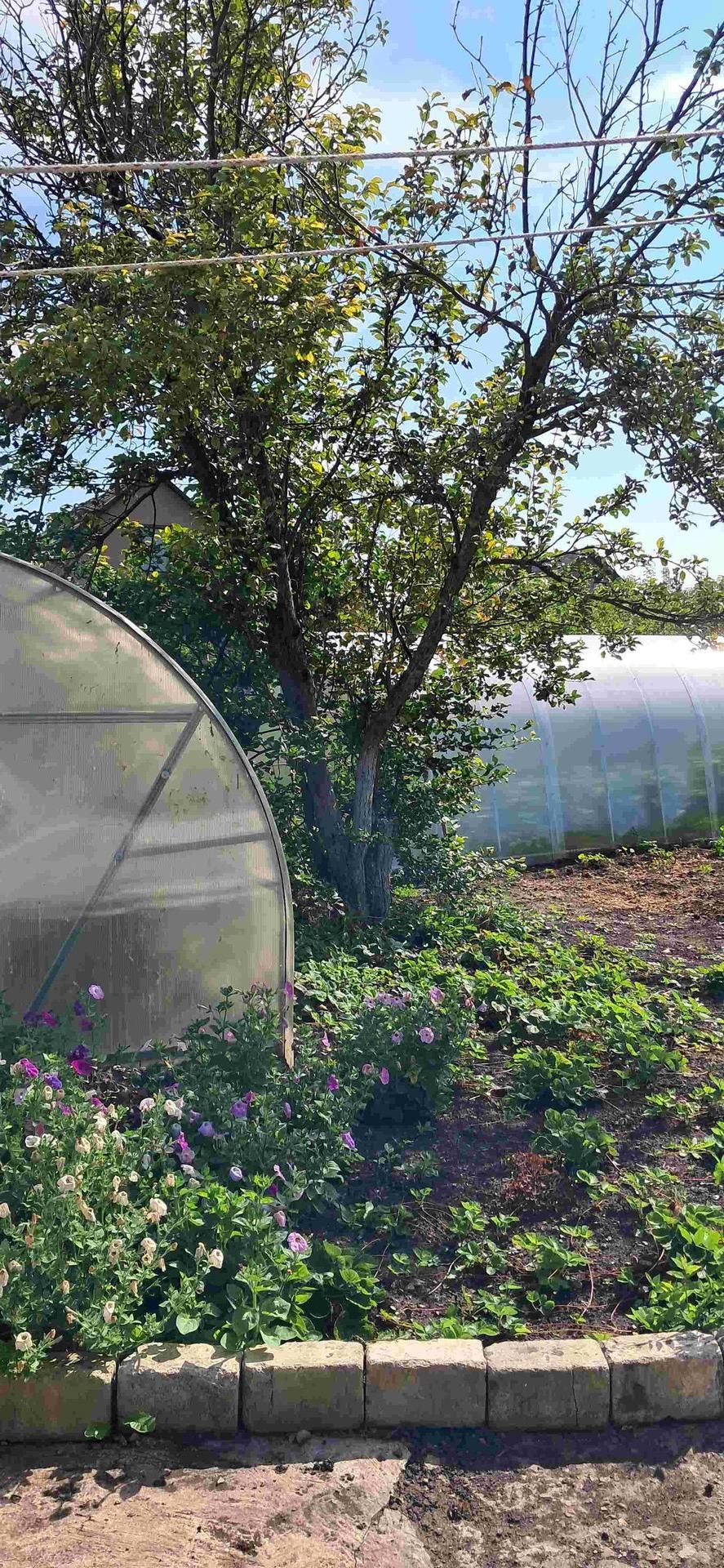 Есть гараж, сарай, беседка, 2 поликарбонатные теплицы.