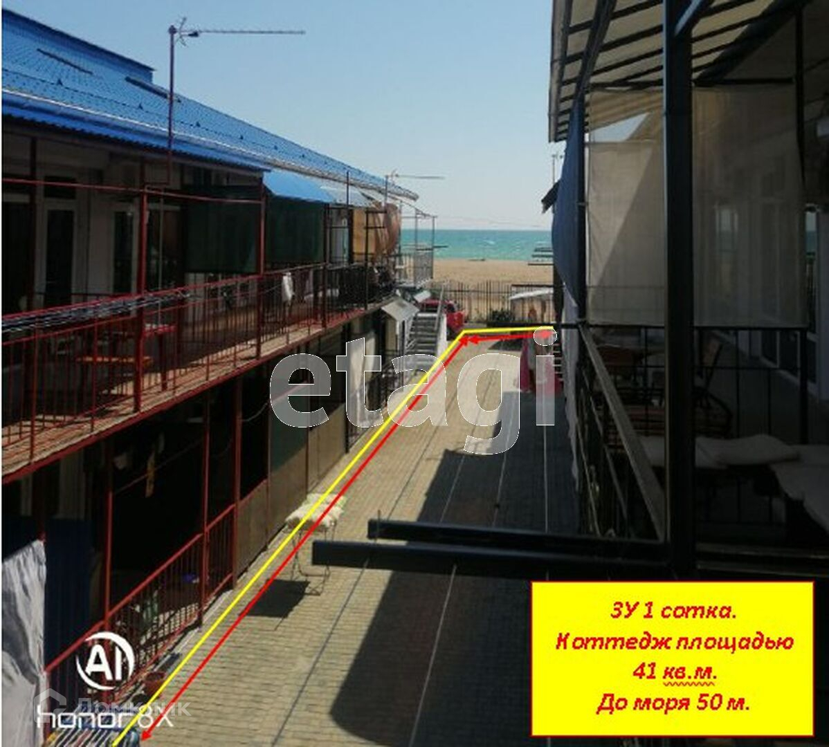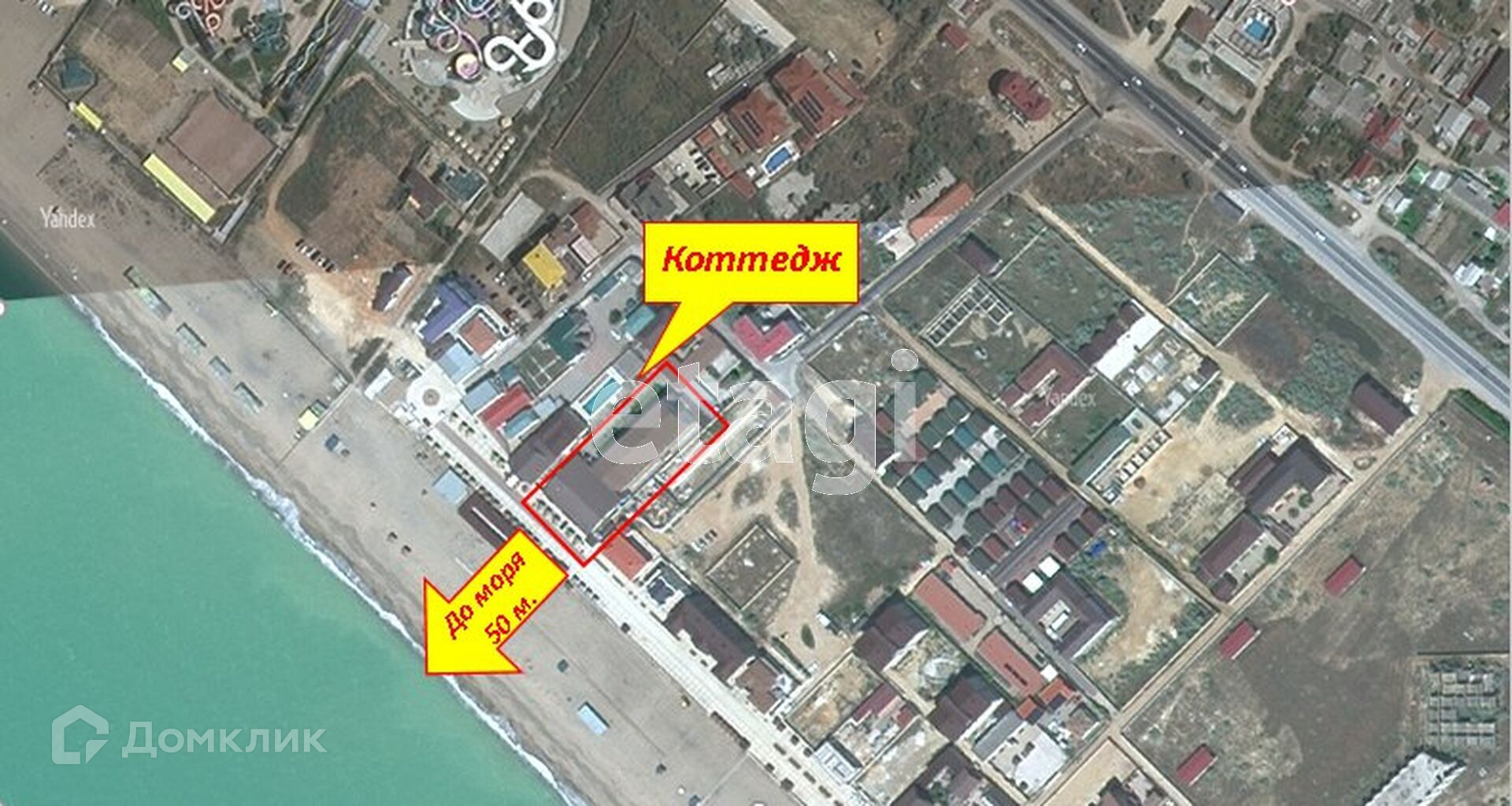 Срочно продается 2-х этажный коттедж (для отдыхающих) в селе Прибрежное. Коттедж состоит из 2-х комнат, общая площадь которых составляет 51 кв.м., комнаты с обособленными входами. Комнаты большие, светлые. Во дворе есть беседка для отдыха и бассейн. Придомовой участок 1-на сотка. Вода (централизованное водоснабжение) и свет подключены. Отопление электрическое. Газ проходит по улице. Расстояние до моря 50 метров, до аквапарка «Банановая Республика» 200 метров. Автобусная остановка в 200-т метрах, железнодорожная станция «Прибрежное» в 1-м километре от коттеджа. До города Саки 6 километров, до города Евпатория 14 километров. В селе Прибрежное есть продуктовые магазины. Ближайшее медицинское учреждение в городе Саки. Документы на здание и земельный участок РФ.