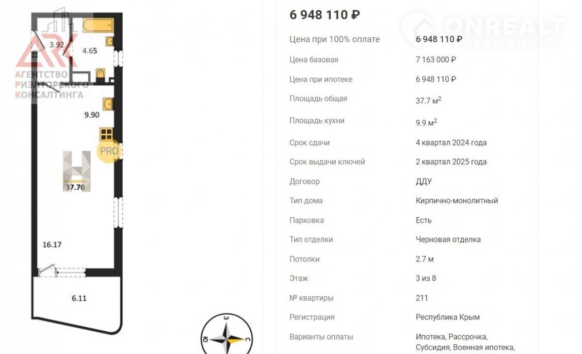 Если данный объект Вам не подошел, звоните или пишите, мы работаем со всеми застройщиками Крыма, проведем сделку по покупке недвижимости от застройщика без комиссии для покупателя, под ключ,  подберем подходящую квартиру мечты , поможем выбрать выгодную ипотечную программу.