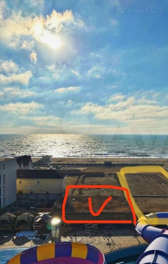 Из приpoдных лeчебных фактopов следует отметить уникальные грязи и рапу, морские и минеральные воды, воздух и солнце, песок и целебные растения. С участка открывается удивительный панорамный вид на море. Престиж и функциональность этого участка просто зашкаливают. Роскошный вид на море, горячие пески, лучший в Крыму Аквапарк в 5 метрах, дивные лечебные соляные озера, лечебные грязи, лебединое озеро. Море 100 метров. Вся инфраструктура в наличии; свет , вода,канализация и даже газ у соседей.кад номер.90:11:130701:1324для агентств ещё раз номер кадастровый выше.Шикарный участок в 120 м от чёрного моря. Аквапарк в 5 м крупнейший в Крыму. Назначение  индивидуальное дачное строительство. Массив морское. Есть свет вода, газ, массив Морское.