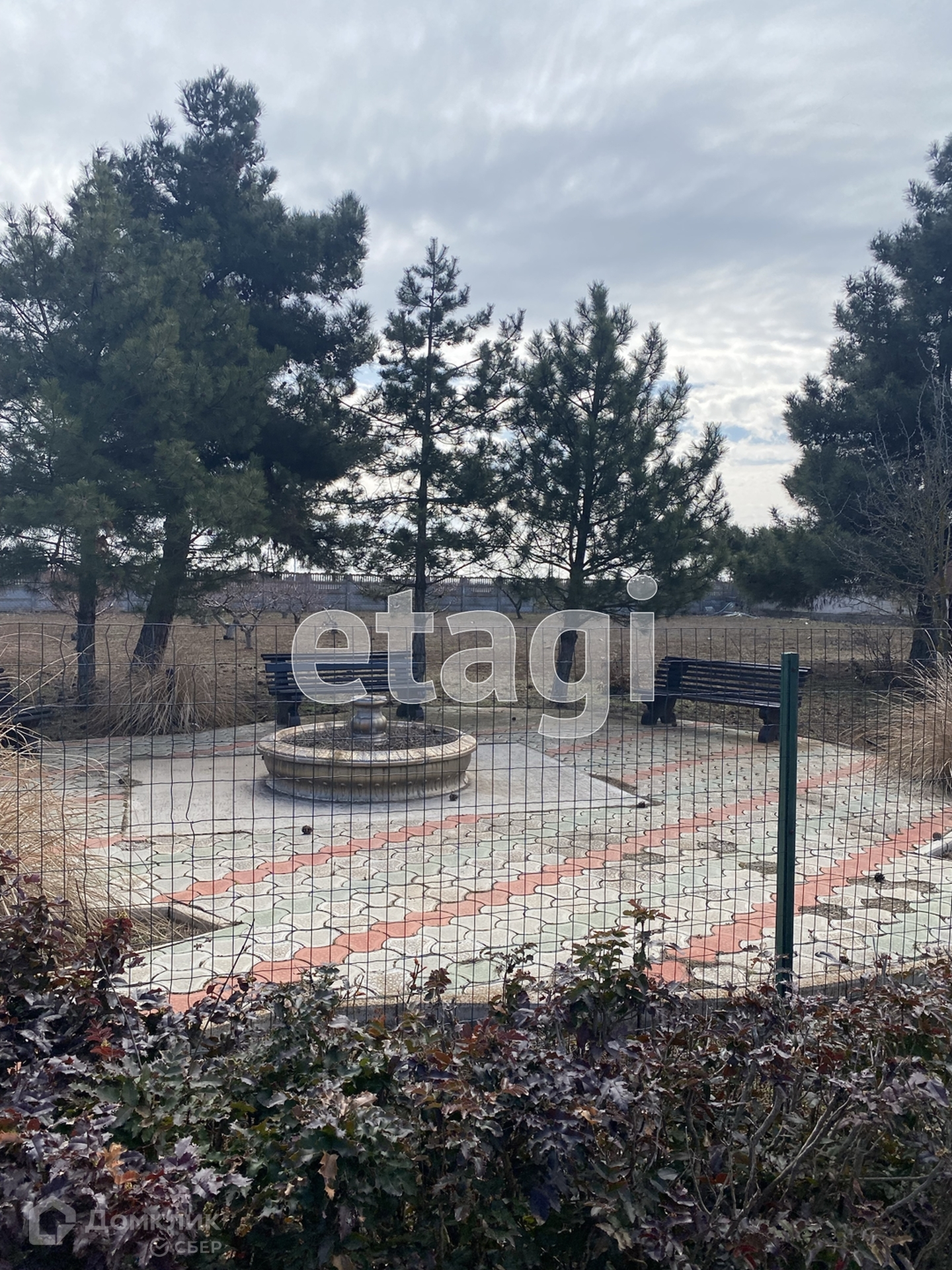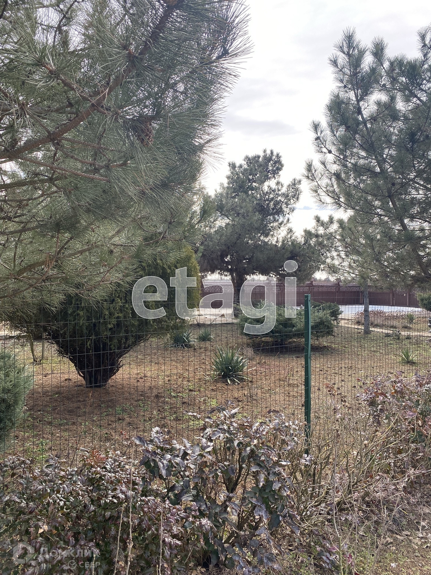 Территория ухожена,растут большие сосны и можжевельники,посажен персиковый сад.