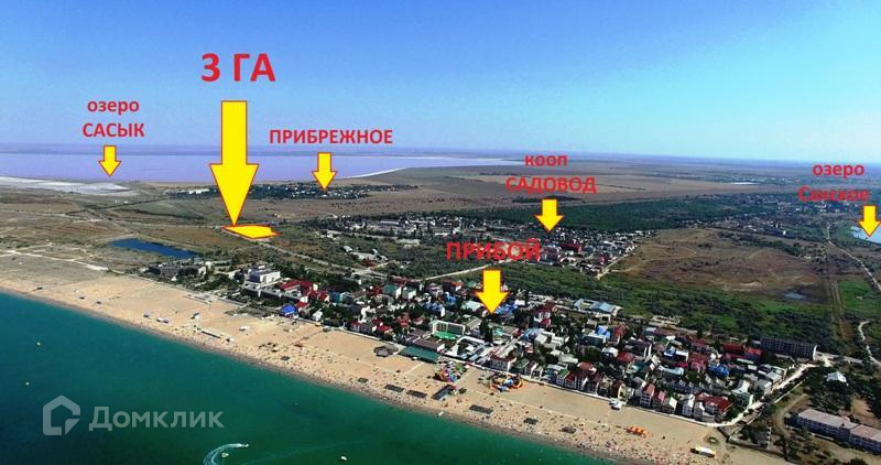 Продам участок 3 гектара в п. Прибрежное, на трассе Евпатория –Симферополь, район базы отдыха «Прибой», где ежегодно приезжает отдыхать и лечится огромное количество людей.Государственный акт на землю. Категория земель: Земли населённых пунктов,  Разрешенное использование: по документу: историко-культурная деятельность. Тип продажи Аренда на 49 лет. С двух сторон участка асфальтированная дорога.Коммуникации - свет и вода проходят по улице.До моря 400 метров, прямая дорога от участка к пляжу. Как видно на фото широкий песчаный пляж, с множеством водных аттракционов (горки, мотоциклы, катамараны, скутера, парашюты, лодки). Рядом лечебные грязи Сакского озера, и большой АКВАПАРК «Банановая республика».Цена:  400 000 у.е.