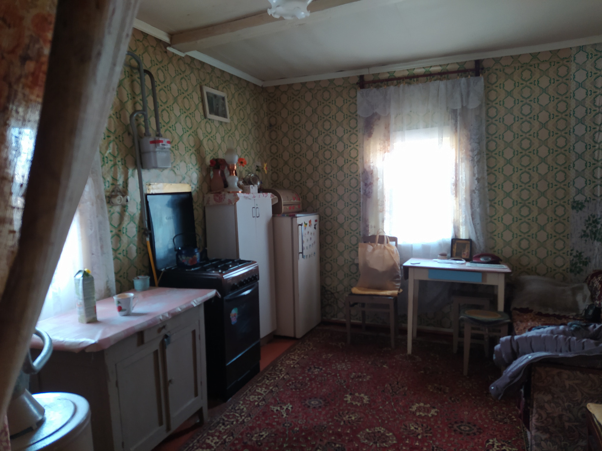 Продаётся  жилой дом, площадью 40,2 кв.м,  на земельном участке 6 соток. Одна жилая комната и кухня. Дом кирпичный, пристрой из шпал.  Окна деревянные, пол деревянный, стены оклеены обоями. В доме отопление от АОГВ, есть печка, рабочая. Газ, свет, телефон, туалет на улице. В огороде водяная скважина, в шаговой доступности колонка.  Рассмотрим все варианты оплаты. Торг уместен.