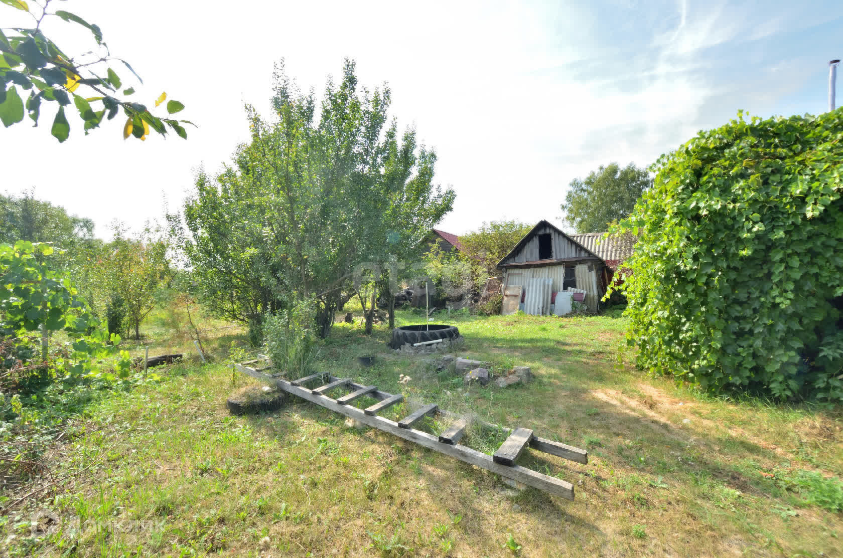 На территории расположены плодово-ягодные насаждения: яблони, сливы, груши, вишня, смородина, виноград и немного клубники, а также березы и елки.